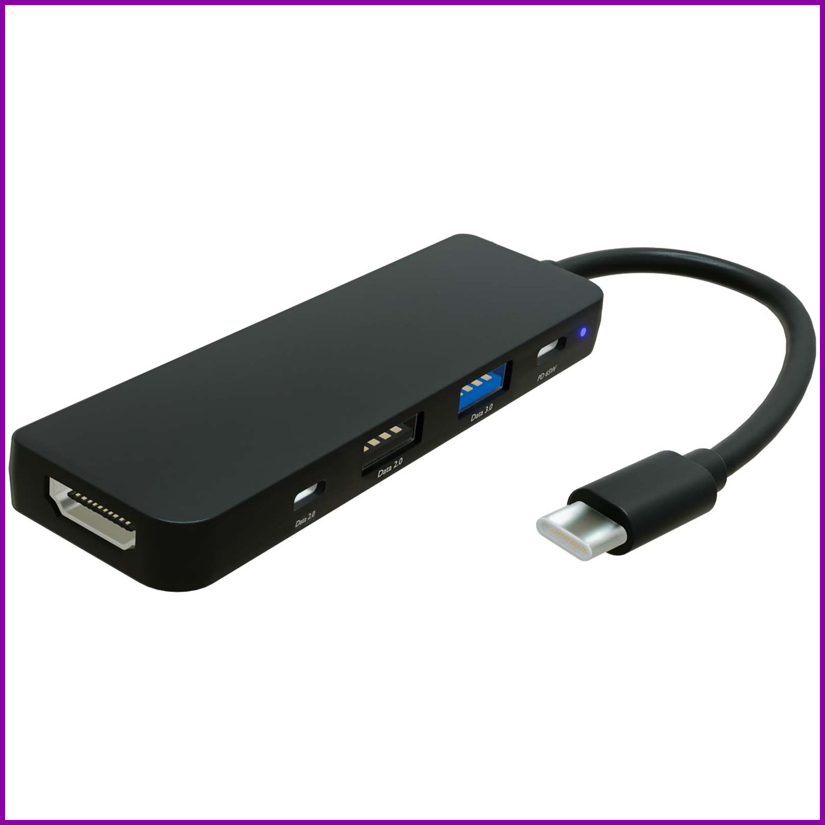5-in-1-USB-keskitin, jonka avulla voit liittää jopa viisi laitetta kerralla, mikä tarjoaa helpon tavan laajentaa kannettavan tietokoneesi portteja. Siinä on 4K HDMI -lähtö, kaksi USB-A 3.0 -dataporttia, yksi USB-C 2.0 -dataportti ja USB-C PD -portti jopa 65 W:n virransyötöllä kannettavan tietokoneen lataamiseen. Sisäänrakennettu USB-C-kaapeli takaa nopean ja vaivattoman plug-and-play-käytön sekä luotettavan tiedonsiirron. Toimitetaan kierrätetystä kartongista valmistetussa liukulaatikossa.Värit ja Koot