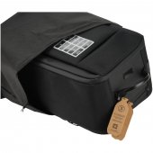 Tämä vedenpitävä 1680D-kankainen mukautuva ja vedettävä reppu kannettavaa tietokonetta varten (55 x 34 x 22 cm) on valmistettu kierrätetystä PET-muovista (vastaa 31 kierrätettyä pulloa). Tukeva rakenne ja pehmustettu pohja suojaavat laukun sisältöä. Repussa on pehmustettu lokero kannettavaa tietokonetta tai tablettia varten, metallinen kahva sekä irrotettava varavirtalähde lentokenttien turvatarkastusta varten. Repussa on RFID-turvatasku ja riippulukko, joilla sisältö pysyy turvassa. Takataskusta voi ottaa hihnat esiin ja muuntaa vetorepun tavalliseksi selkärepuksi. Mukana nopeasti lataava 10 000 mAh:n varavirtalähde ja valaistu rPET-latausjohto. Tällä johdolla voi ladata varavirtalähteen suoraan USB-/Android-liitännän avulla laukun ulkopuolelta (ilman, että varavirtalähdettä tarvitsee ottaa pois laukusta). Etupuolen laattaan sekä 3-in-1 rPET -johdon toiselle sivulle voidaan lisätä painatus. Mukana säilytyspussi.Värit ja Koot