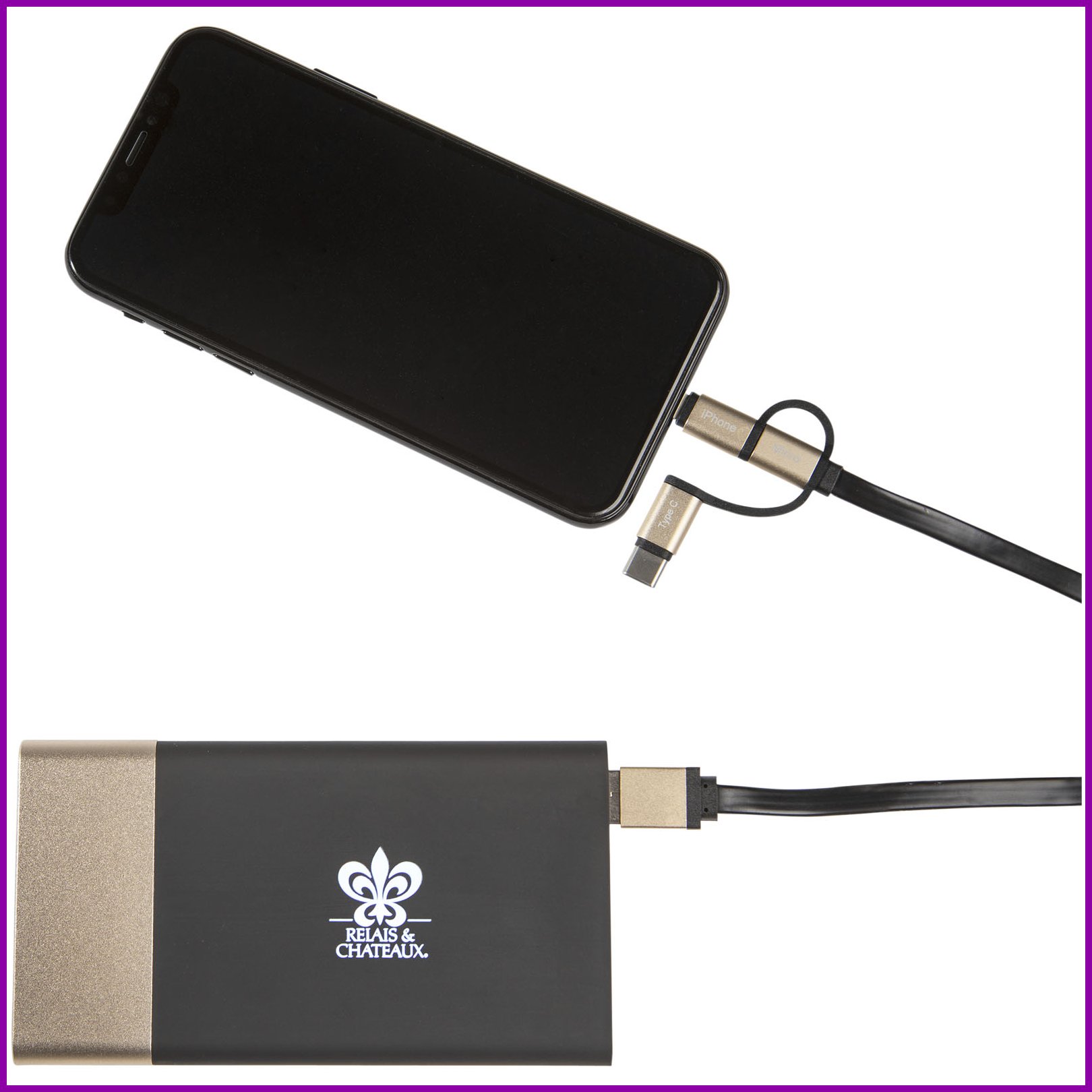 5000 mAh:n varavirtalähde valaistuvalla logolla ja 3-in-1 (Type-C, Android, iPhone) -pikalatauskaapelilla, värikoordinoitu varavirtalähteeseen. Kaapelin mateiraali kierrätetty RPET-muoci. Heilutustoiminto valaisee laitteen, kun sitä kosketetaan. Logo voi pysyä yhdellä latauksella valaistuna jopa 20 päivän ajan. Kapasiteetti: 5000 mAh. Tasavirtatulo: 5V / 2 A micro-USB. Tasavirran kaksoislähtö: 5 V / 2.1 A ja 5 V / 1 A, pikalataus. Nettopaino: 138 grammaa. Koko: 127 x 70 x 12 mm. Toimitetaan lahjapaketissa, joka on valmistettu kierrätetystä paperista.Värit ja Koot
