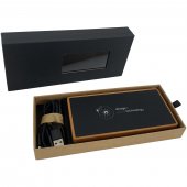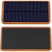 Aurinkoenergialla toimiva varavirtalähde (14,4 x 6,9 x 1,95 cm) on valmistettu puusta ja soft touch- kierrätetystä muovista. Kapasiteetti 10 000 mAh, voidaan lisätä yksilöllinen valaistu logo. Varavirtalähde voidaan ladata monokiteisellä aurinkopaneelilla tai mukana toimitetulla 5-in-1 rPET-latauskaapelilla. Tässä varavirtalähteessä on USB-C- ja USB-A-tulo/lähtö ja 5 W:n langaton liitäntä. Laitteesi voidaan ladata mukana toimitetulla kaapelilla tai langattomasti (5 W). Logo syttyy 30 sekunnin ajaksi kosketustoiminnolla ja se pysyy päällä latauksen ajan. Toimitetaan kierrätetystä voimapaperista valmistetussa lahjapakkauksessa (20 x 8,8 x 2,8 cm). Kolmen vuoden takuu.Värit ja Koot