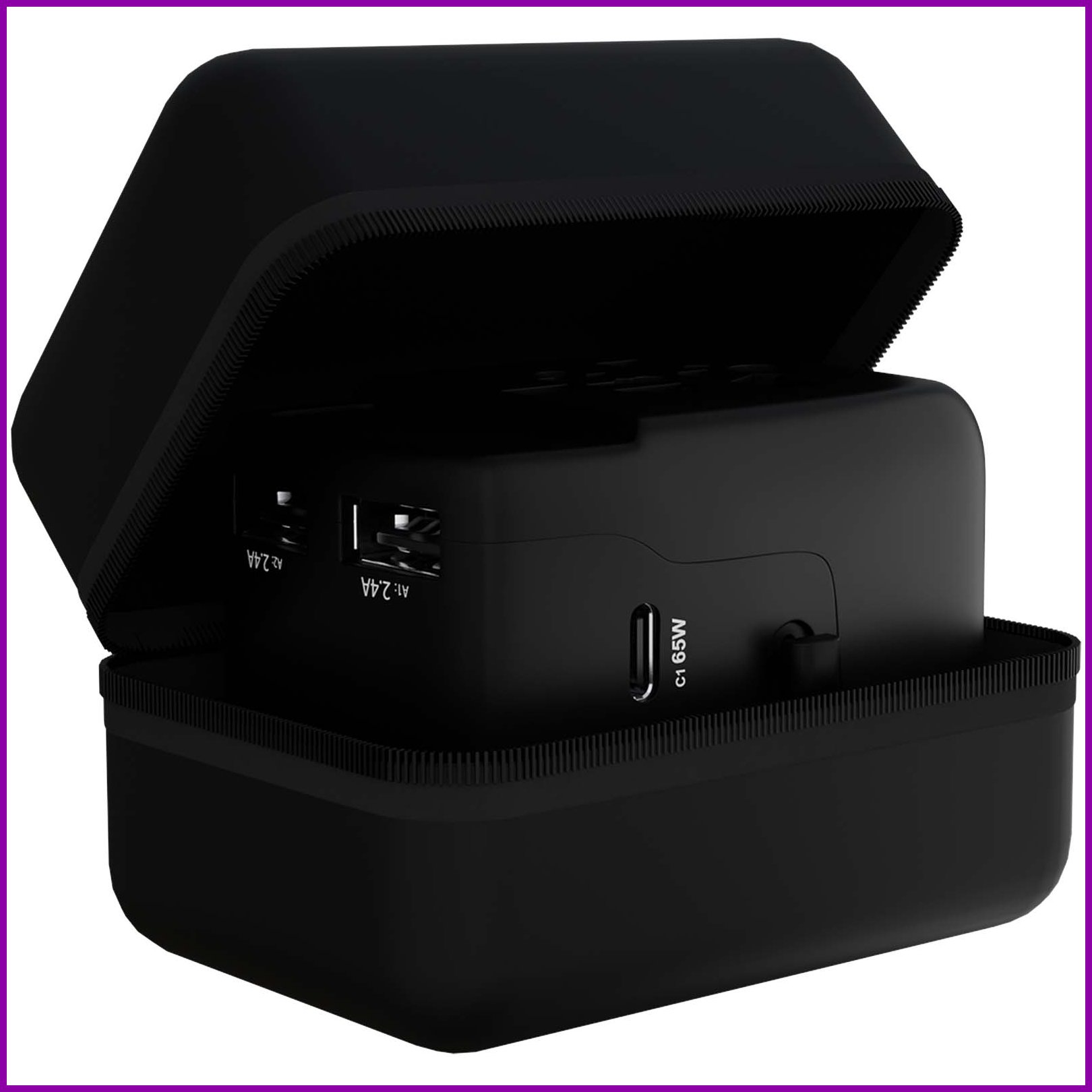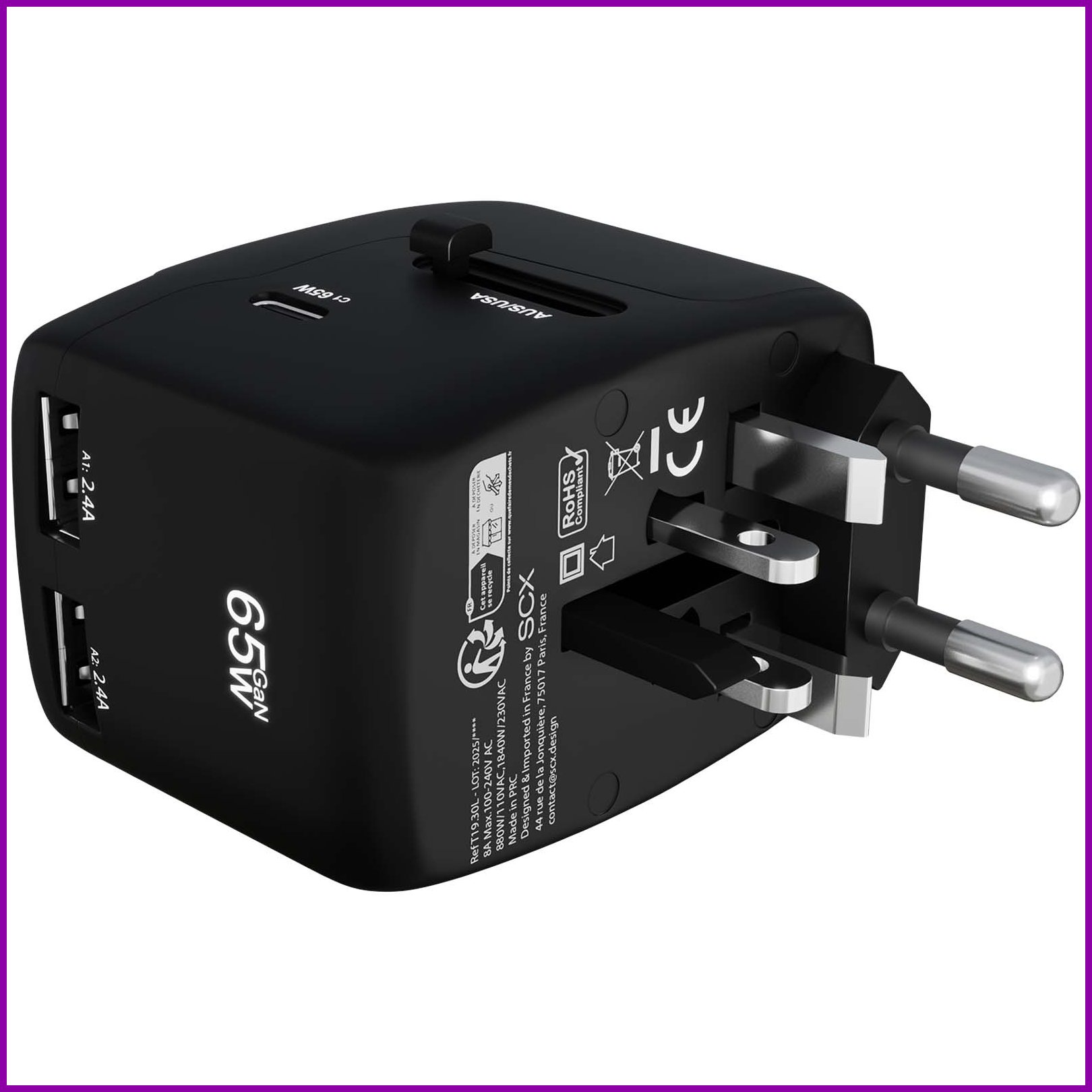 Yleismallinen matkasovitin, jossa on kaksi USB-A-porttia ja kaksi USB-C-lähtöä, mukaan lukien 65 W:n erittäin nopea GaN + PD USB-C -portti kannettavan tietokoneen lataamiseen. Kirkkaalla, valaistulla kumipintaisella logolla viimeistelty laite on yhteensopiva 150 eri maan pistokkeiden kanssa, ja sen mukana tulee ensiluokkainen PU-matkakotelo.Värit ja Koot