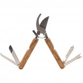 Kahden monitoimityökalun setti: Yksi 10-in-1-vasara/-pihdit ja yksi 6-in-1-leikkuri, valmistettu ruostumattomasta teräksestä ja italialaisesta oliivipuusta. Toimitetaan kierrätetystä kartongista valmistetussa lahjapakkauksessa.