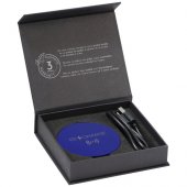 10 W kumipintainen langaton latausasema valaistulla logolla ja RPET-materiaalista valmistetulla latauskaapelilla, antibakteerinen käsittely. Toimitetaan mustassa kierrätyspaperista valmistetussa lahjapakkauksessa, jossa on magneettinen sulkumekanismi. EUROPE EUIPO -patentti.Värit ja Koot