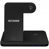 3-in-1 kierrätysmuovista valmistettu kokoontaittuva langaton latausalusta, joka toimii myös puhelinjalustana. Laite voi ladata kolmea eri laitetta samanaikaisesti: älypuhelinta (15 W), nappikuulokkeita (5 W) ja älykelloa (2 W). Pakattu kierrätetystä paperista valmistettuun lahjapakkaukseen (19 x 17,5 x 2,3 cm), jossa on magneettinen suljenta. Kolmen vuoden takuu.Värit ja Koot