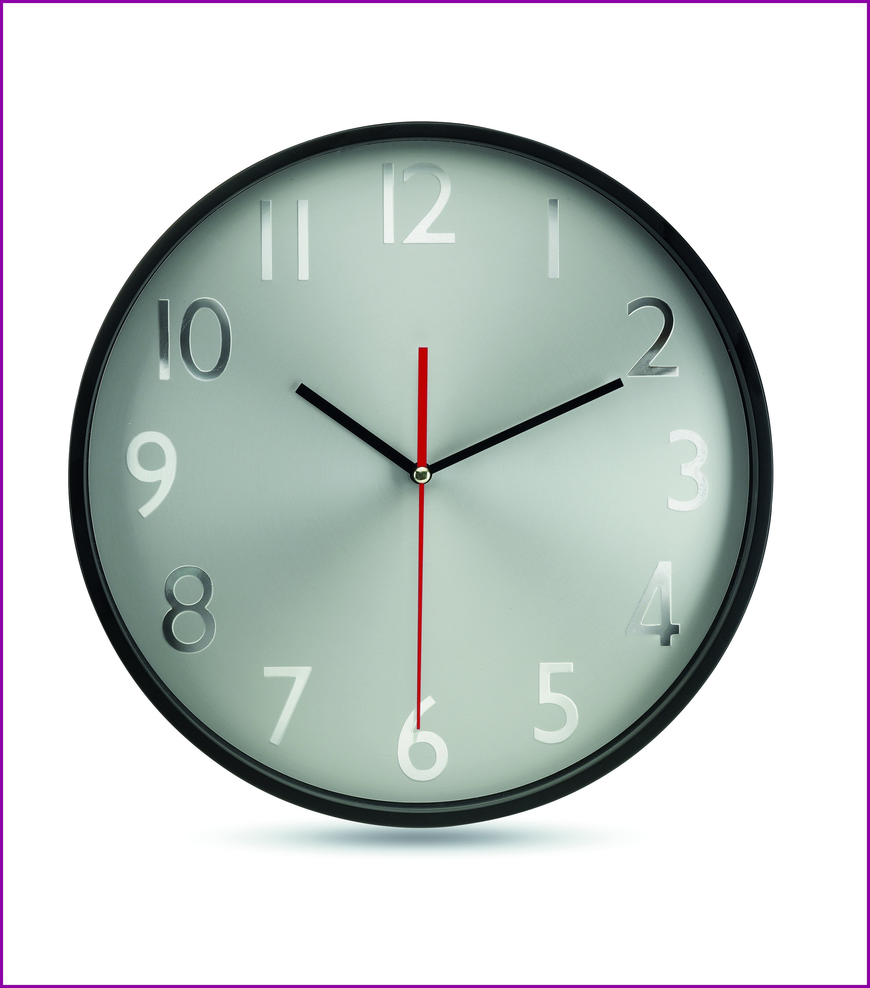 Seinäkello alumiinisella kellotaululla ja viisareilla, kellotaulu on suojattu lasilla. Paristot eivät sisälly tilaukseen.