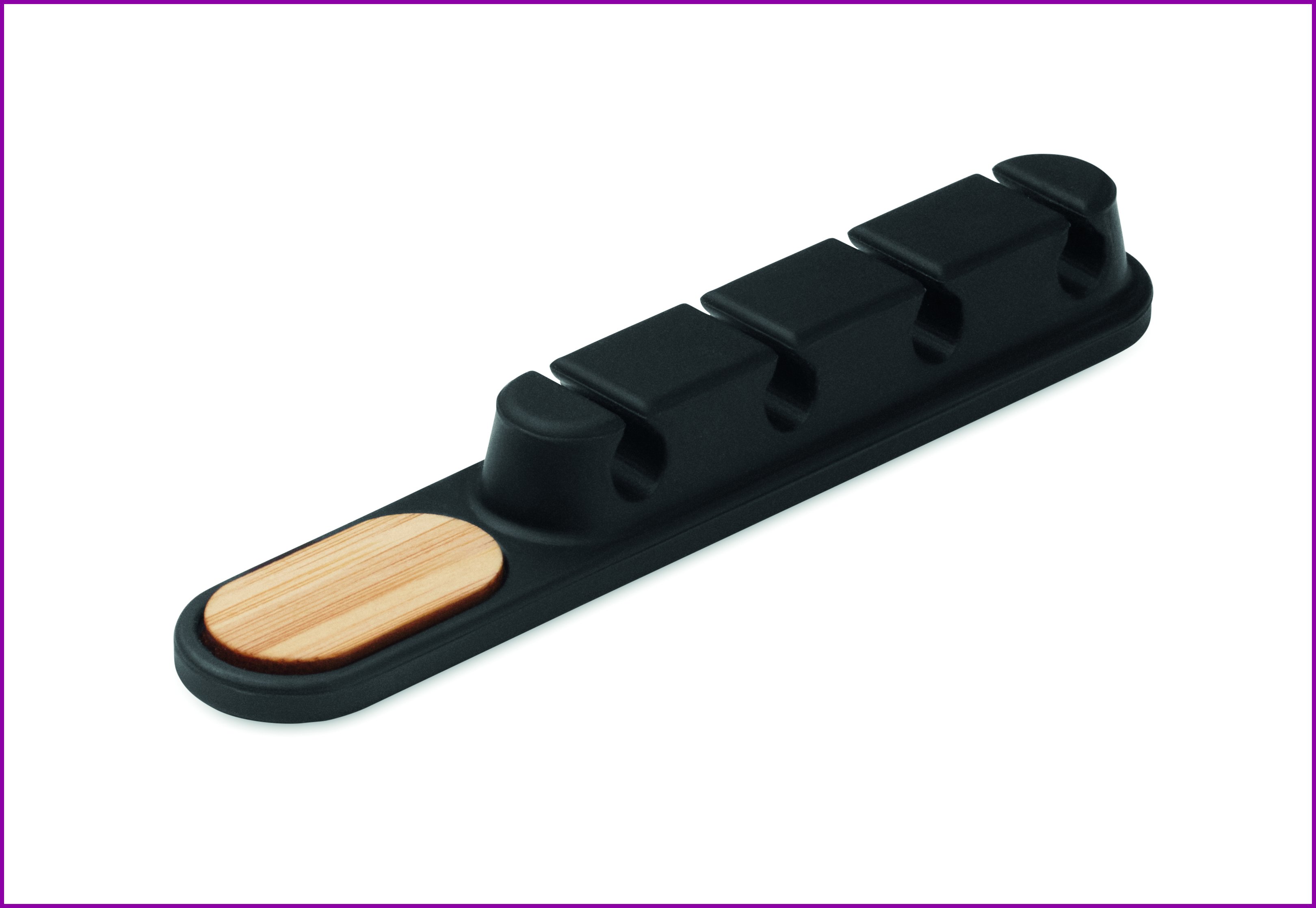 Silikoninen kaapelijärjestäjä luonnonbambuyksityiskohdilla. Kompakti soikea muotoilu pitää kaapelit siisteinä ja turvassa.