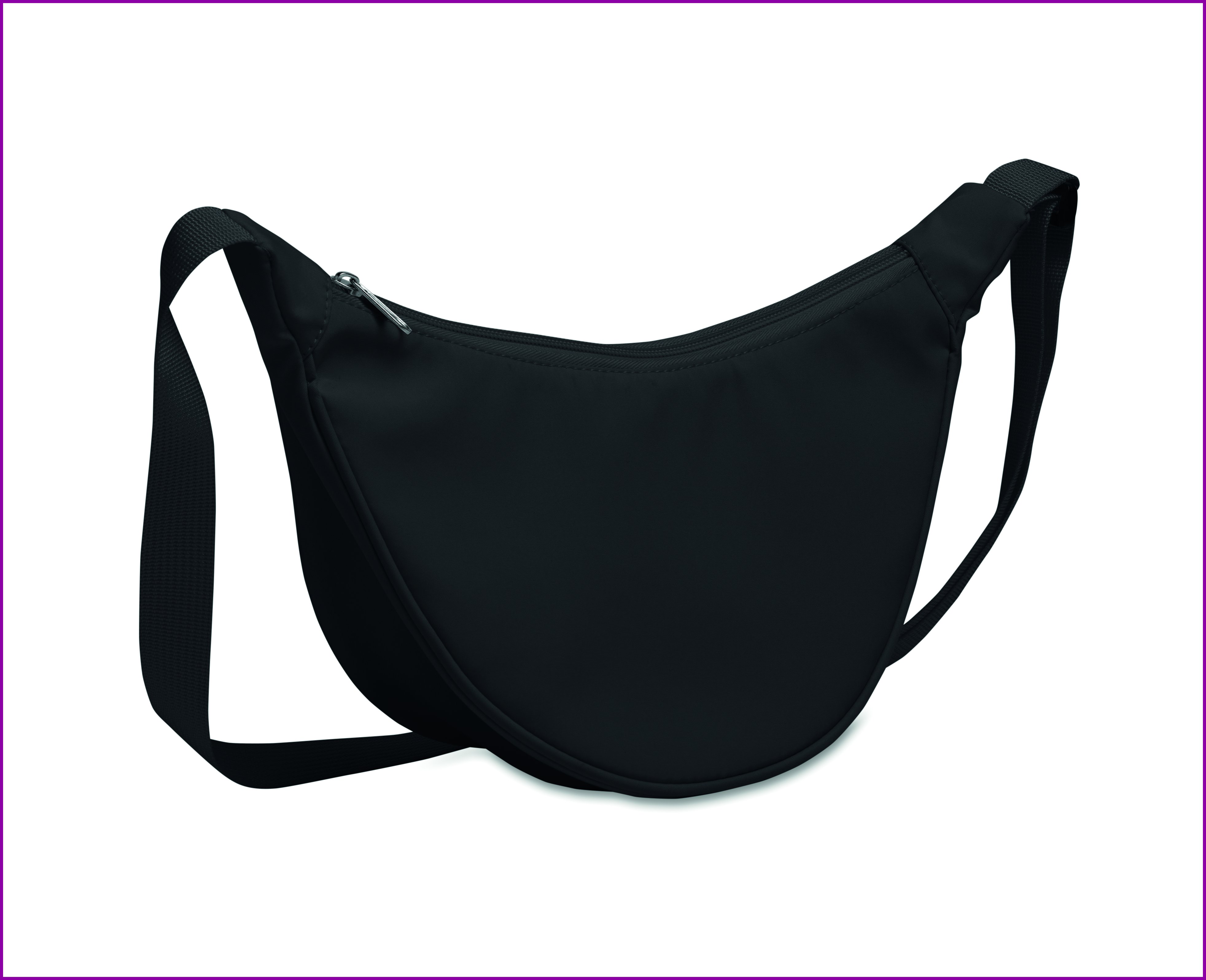 Puolikuun muotoinen yliolan laukku 400D Oxford -kankaasta ja 210D RPET-vuorilla. Yksi vetoketjullinen päätasku ja kaksi sisätaskua.
