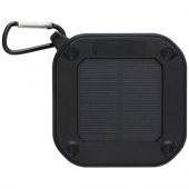 Pyydä tarjous painatuksesta tuotteseen Solo 3 W:n IPX5 RCS -kierrätetystä muovista valmistettu, aurinkoenergialla toimiva Bluetooth®-kaiutin jousihaalla Musta
