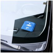 Pysäköintikiekko, jossa on mukana jääkaavin, kumipyyhin, ostoskärrykolikko ja rengaspainemittari. Kiekon takaosassa on suuri valkoinen logoalue. “Hour Of Arrival” -saapumisteksti on hollanniksi, englanniksi, ranskaksi, saksaksi ja italiaksi. Säännökset voivat paikallisesti vaihdella.Värit ja Koot