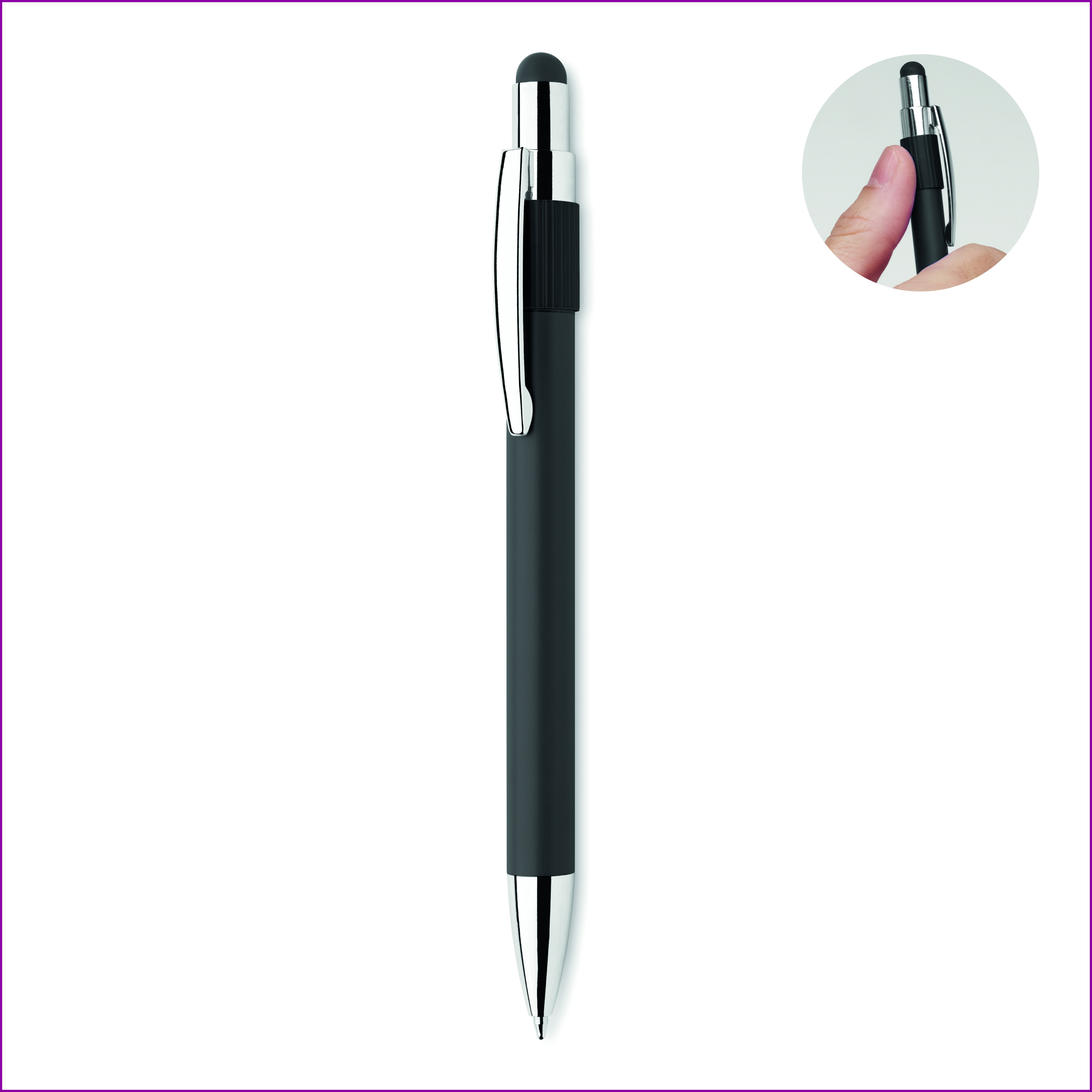 Stylus push ball spinner -kynä kierrätysalumiinista. Sininen muste.