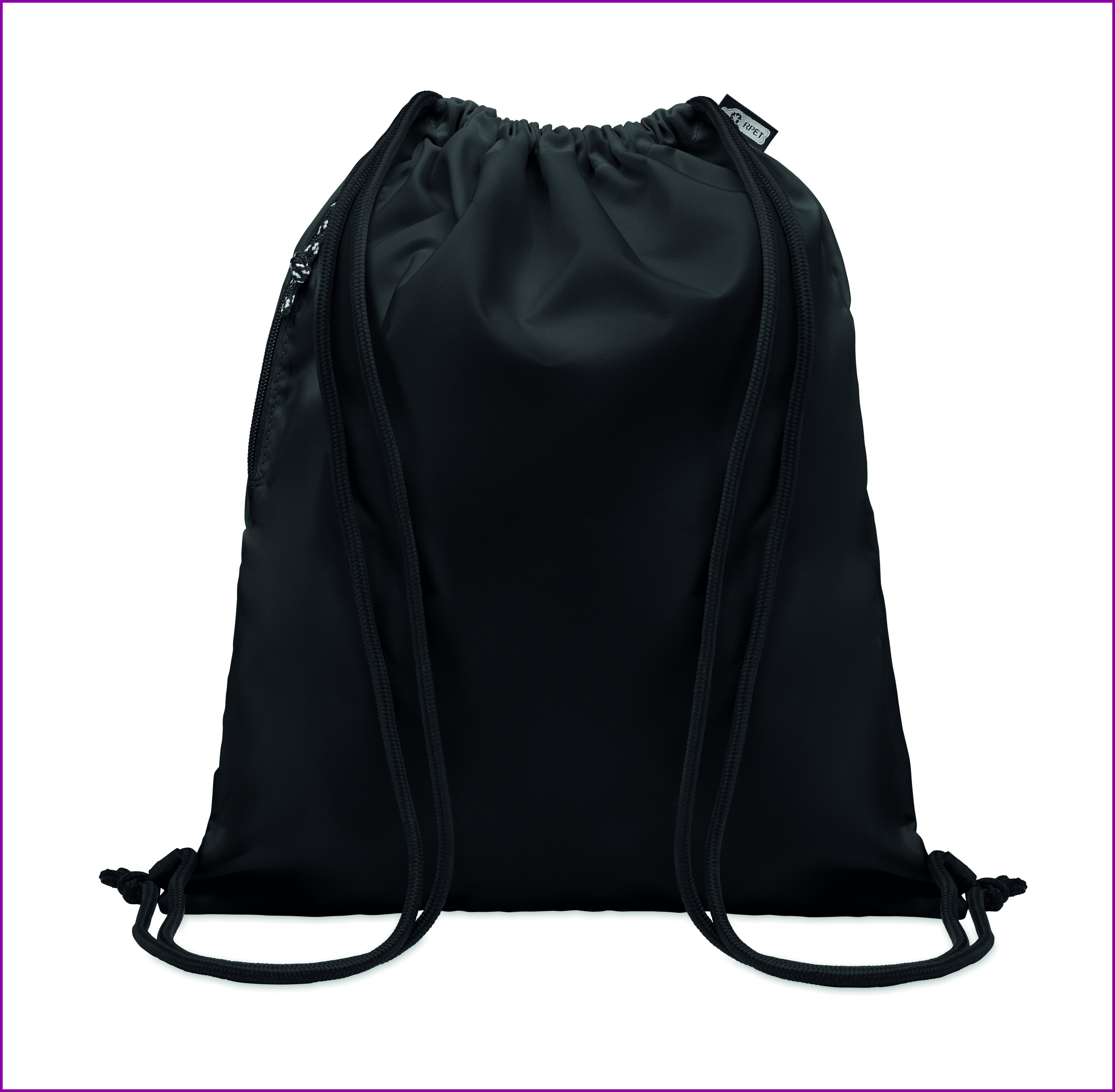 300D RPET polyesteristä valmistettu suuri narureppu , jossa on vetoketjullinen sivutasku. Paksut narut.