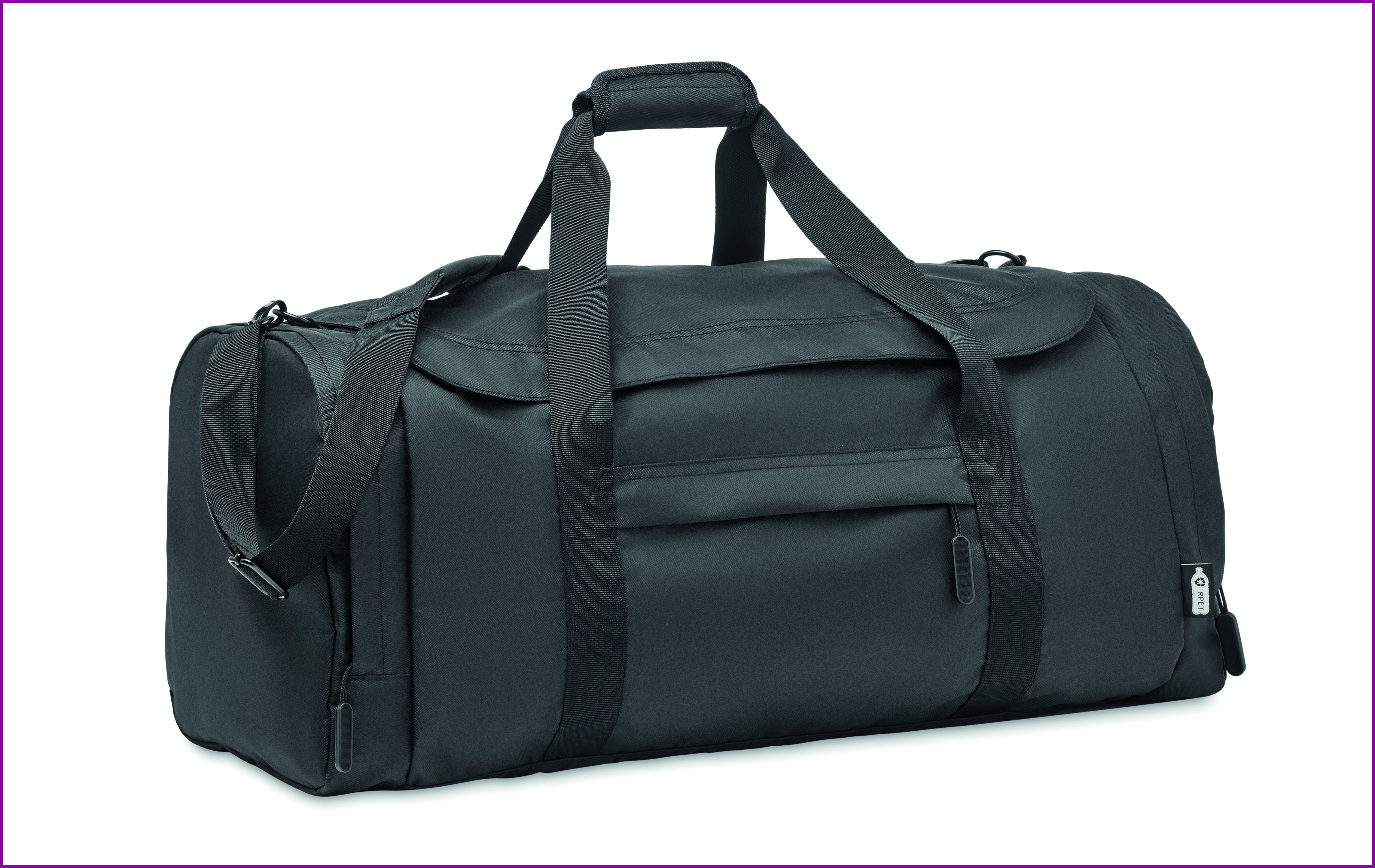 Suuri laukku urheiluun tai matkalle 300D RPET-polyesteristä. Päälokero vetoketjulla ja muita säilytyslokeroita. Irrotettava vahvistettu alaosa sekä säädettävä ja irrotettava olkahihna.