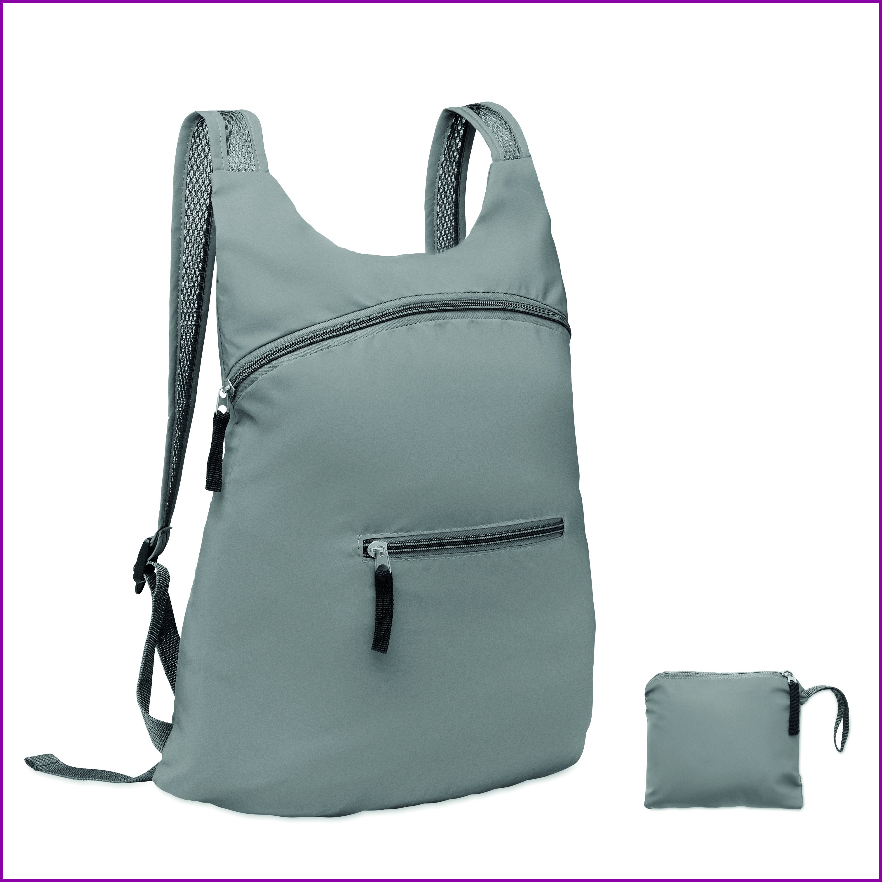 Kokoontaitettava kassi heijastavasta 190T polyesteristä. Kassissa vetoketjullinen etutasku sekä säädettävät ja irrotettavat olkahihnat.