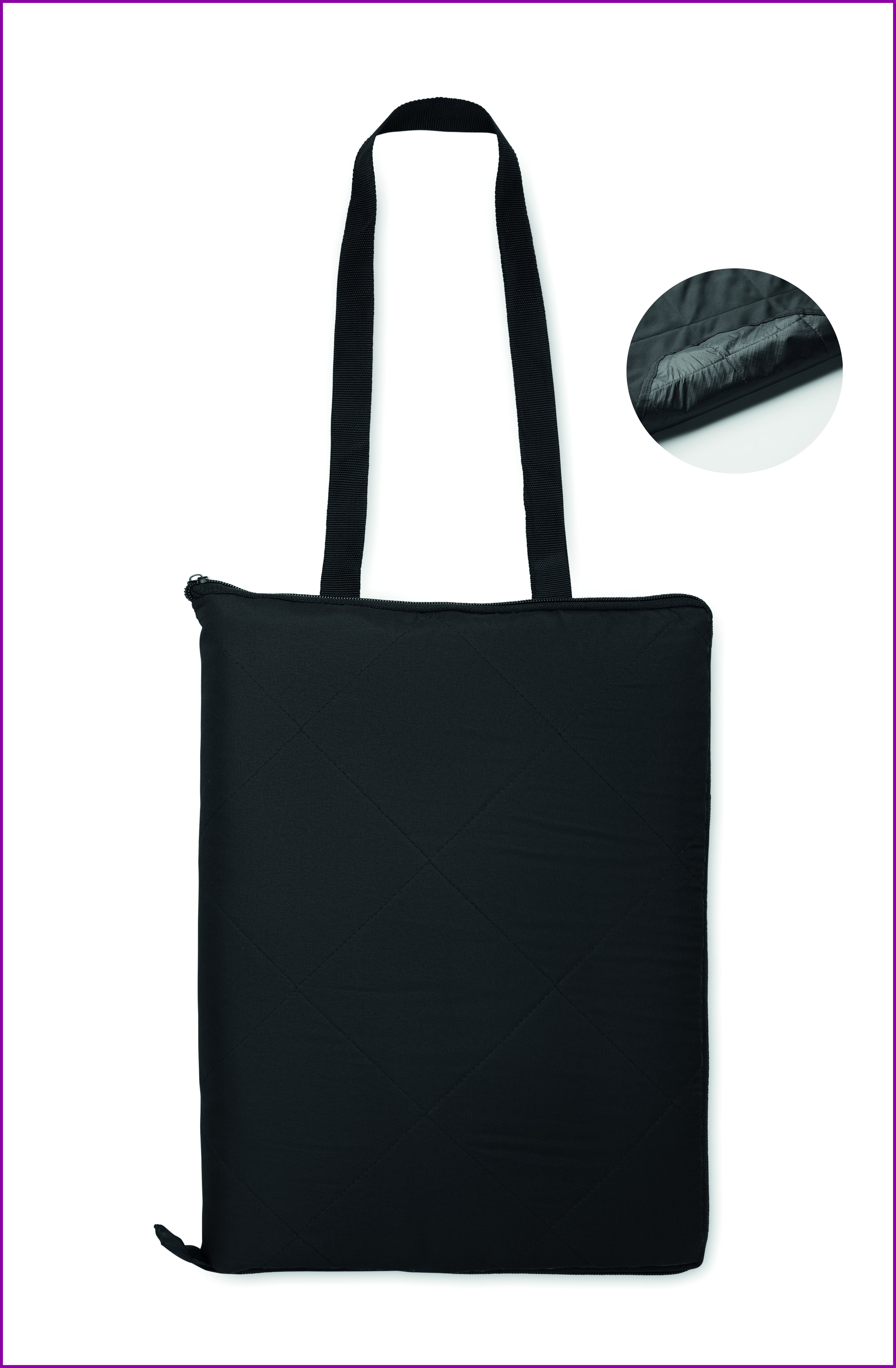 Taitettava tikattu piknikhuopa, jonka kääntöpuolella on muovipinnoitettu PEVA. Taittuu käteväksi kantolaukuksi jossa on säädettävä olkahihna. Suuri etusivutasku.