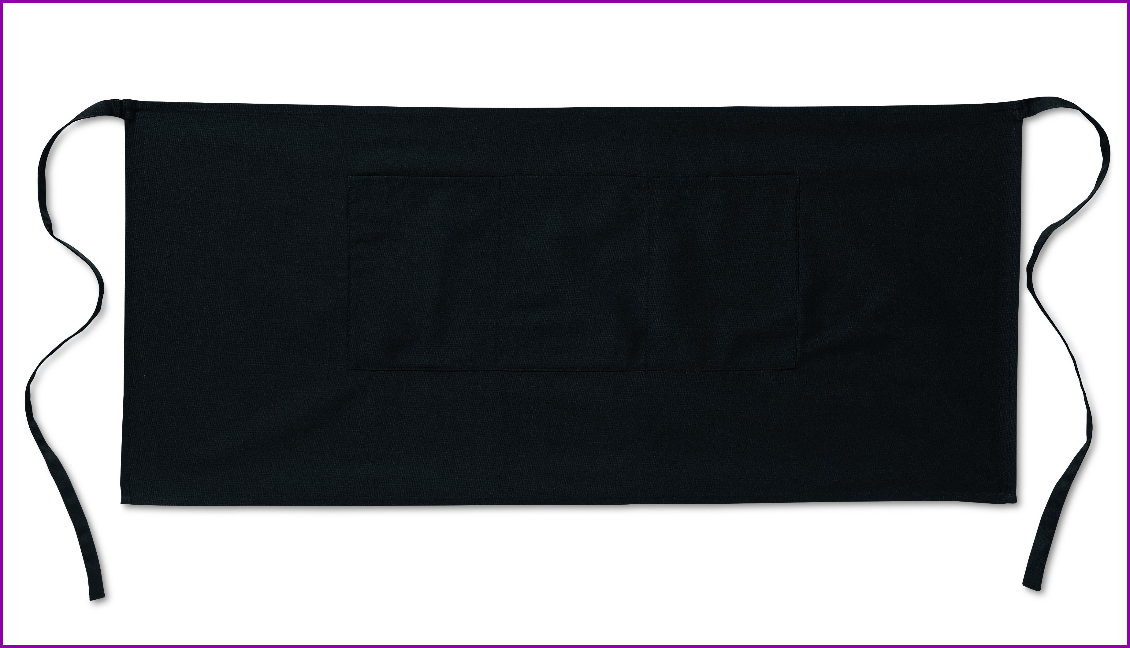 Tarjoilijan esiliina, lyhyt versio. 195 g / m², 90% polyesteriä ja 10% puuvillaa.