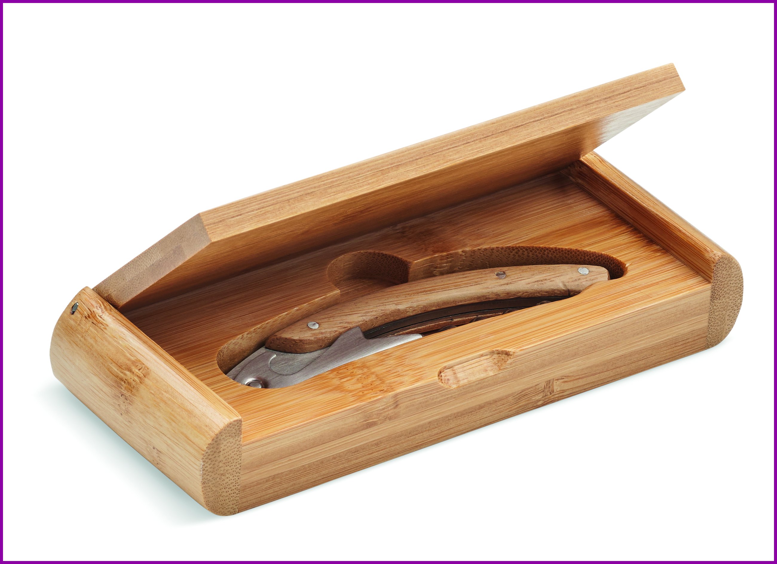 Ruostumattomasta teräksestä valmistettu alkuperäinen tarjoilijam korkkiruuvi, jossa on kaksinkertainen korkkiruuvin avaaja ja bambupinta. Toimitetaan bambuisessa lahjapakkauksessa.