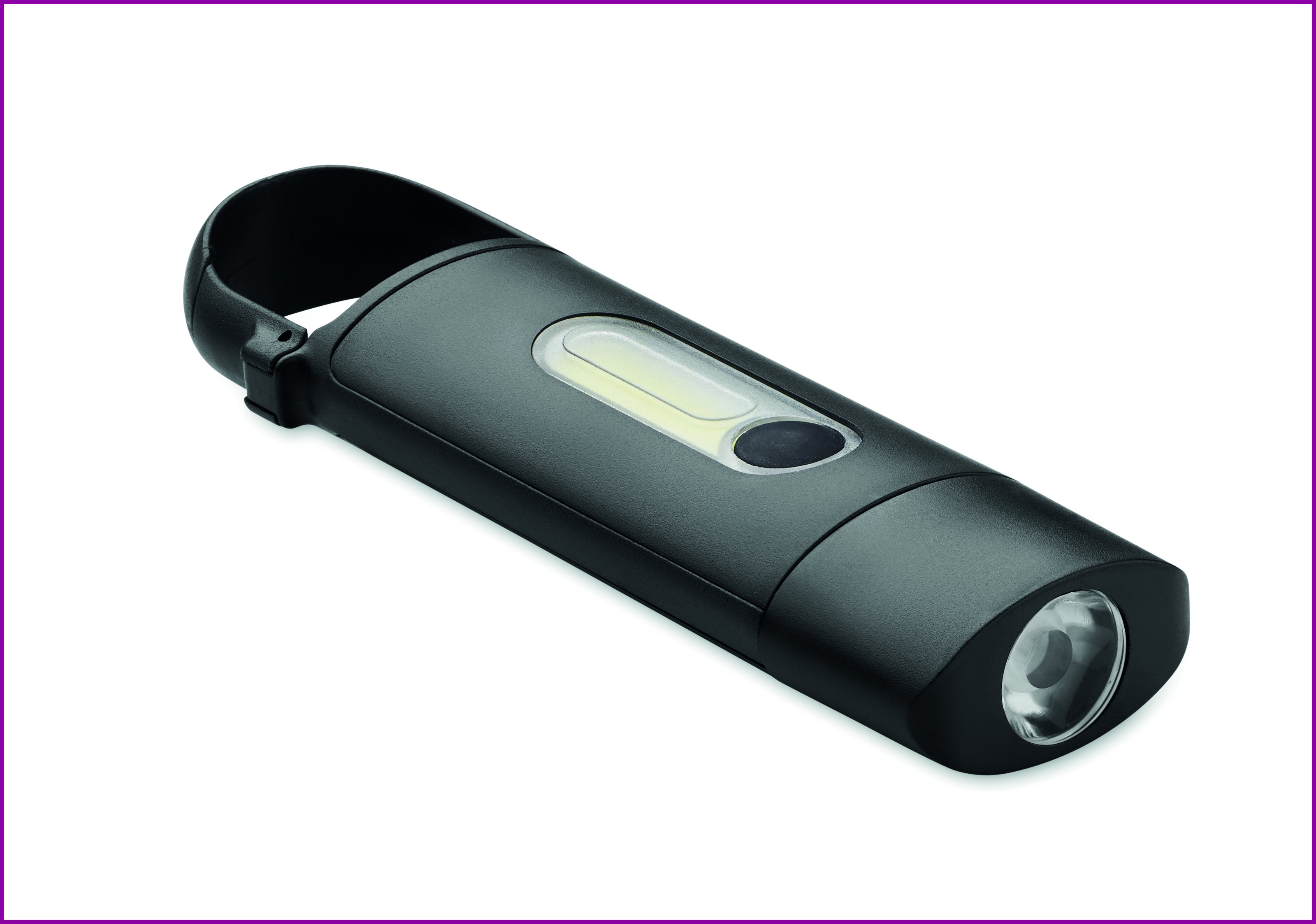 Taskukokoinen ladattava COB-taskulamppu, jossa on karabiinikoukku ABS:stä. Hätävalo ja 3 valaistustilaa. 1 x 3,7 V, 200 mAh litiumparisto (sisältyy, ei vaihdettava).