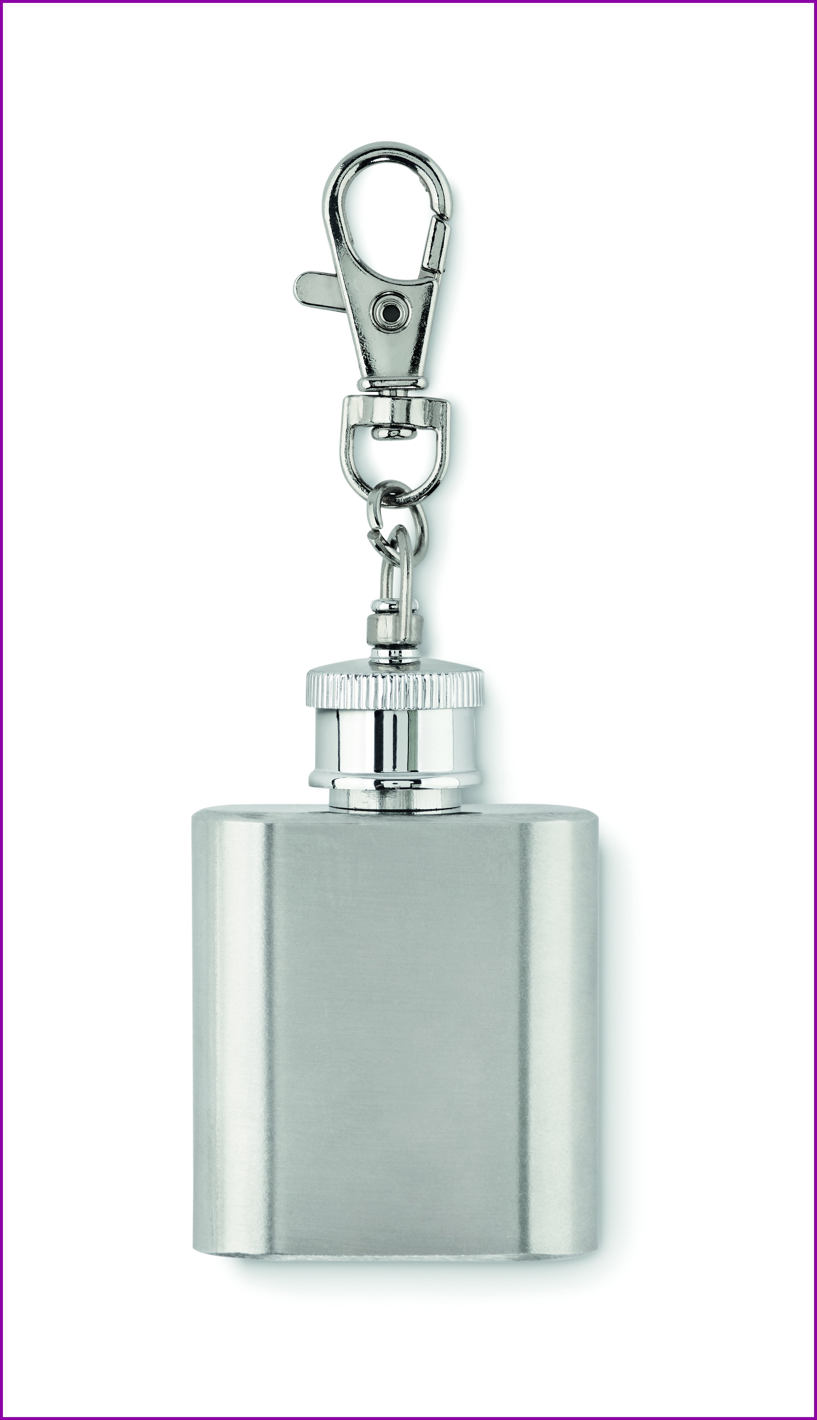 Taskumatti-avaimenperä ruostumatonta terästä. Tilavuus: 28 ml.