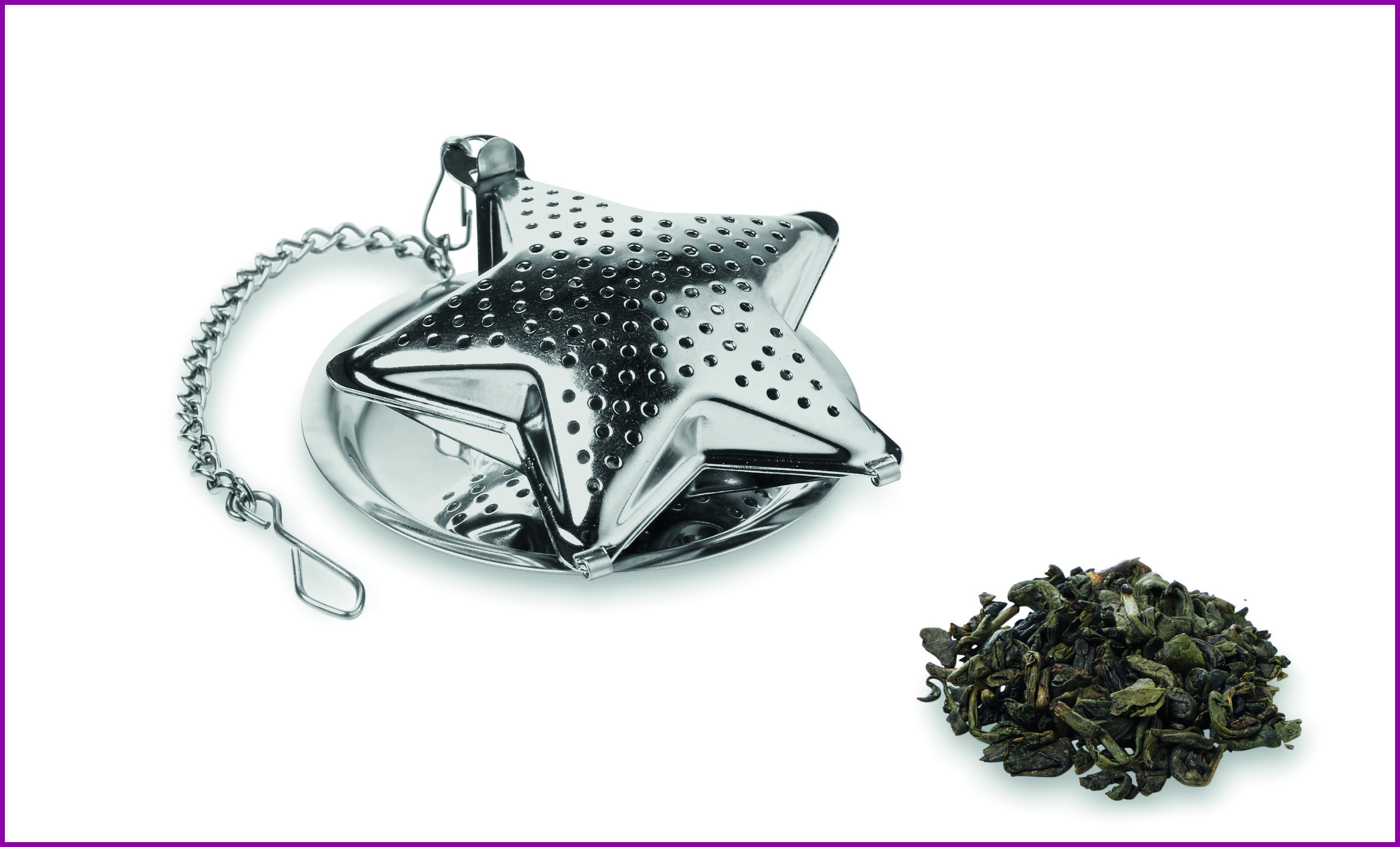 Tähden muotoinen teesiivilä, valmistettu ruostumattomasta teräksestä.