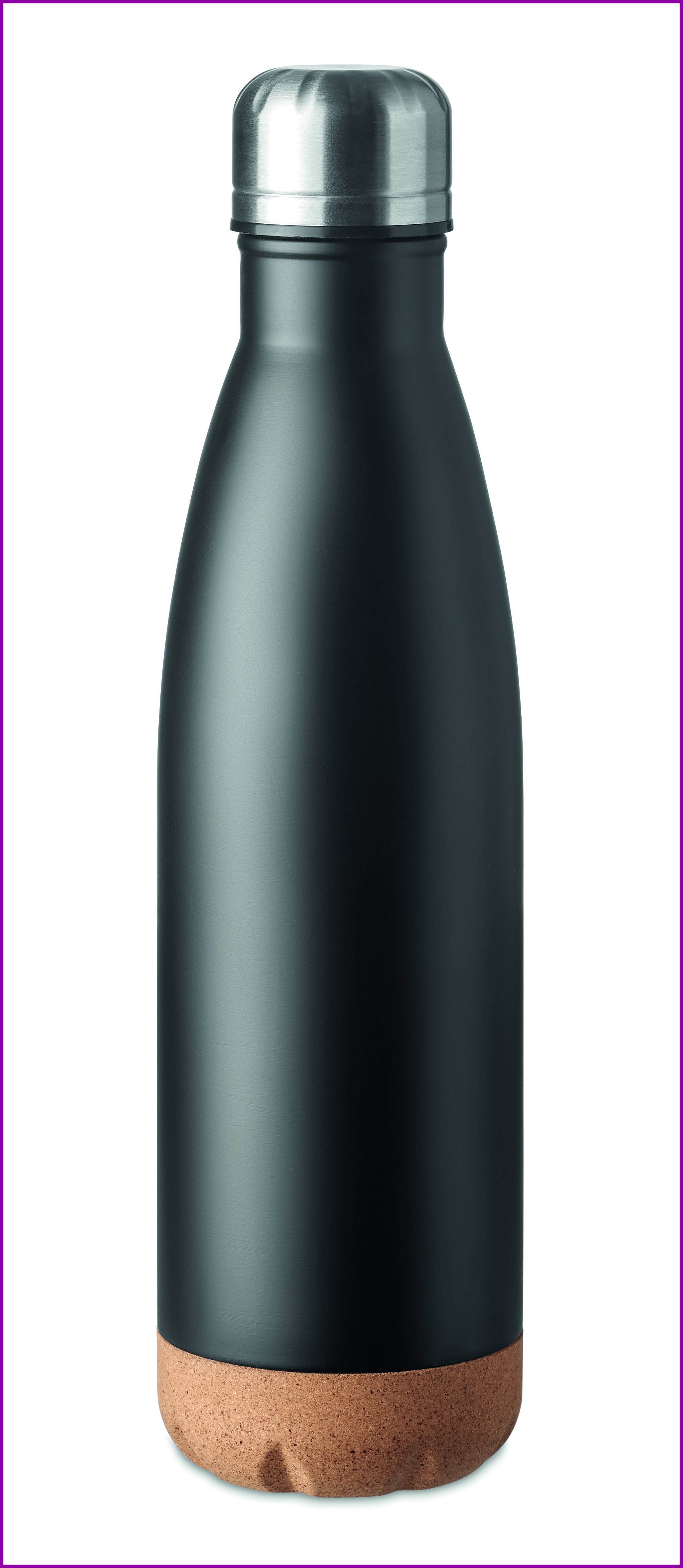 Kaksiseinäinen ruostumattomasta teräksestä valmistettu 500 ml termospullo, korkki viimeistelyllä. Tuote on vuoto vapaa.