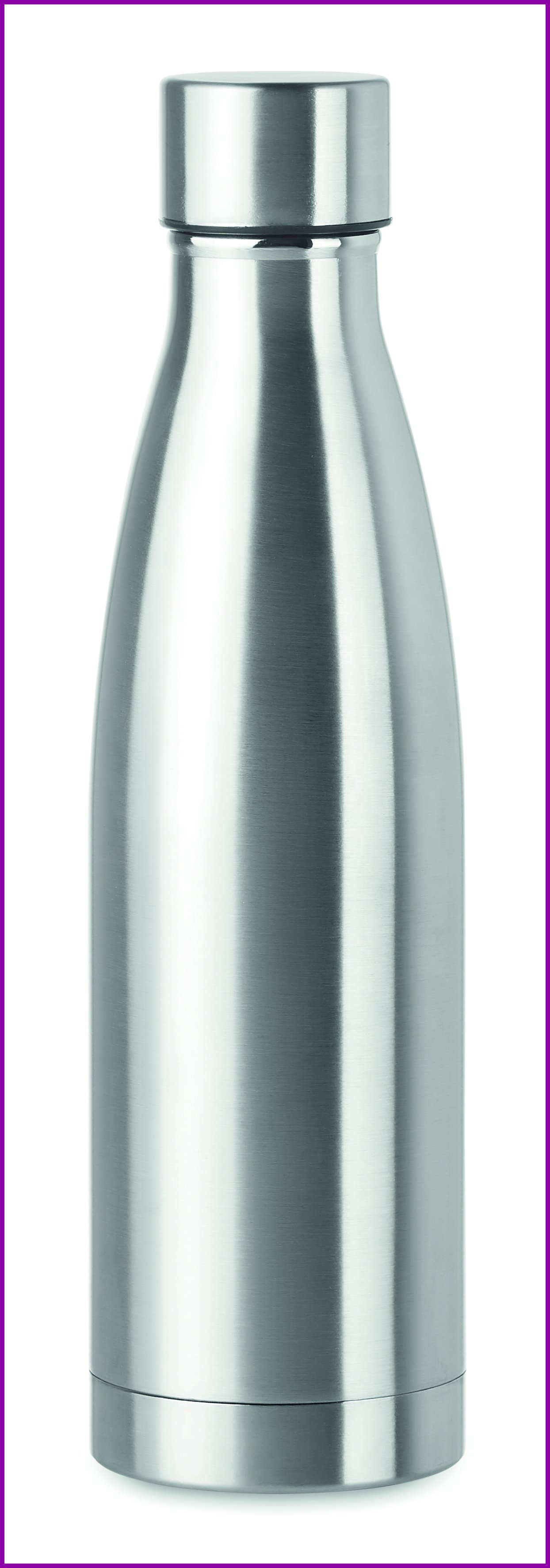 Kaksiseinäinen ruostumattomasta teräksestä valmistettu 500 ml termos juomapullo, tuote on vuoto vapaa.