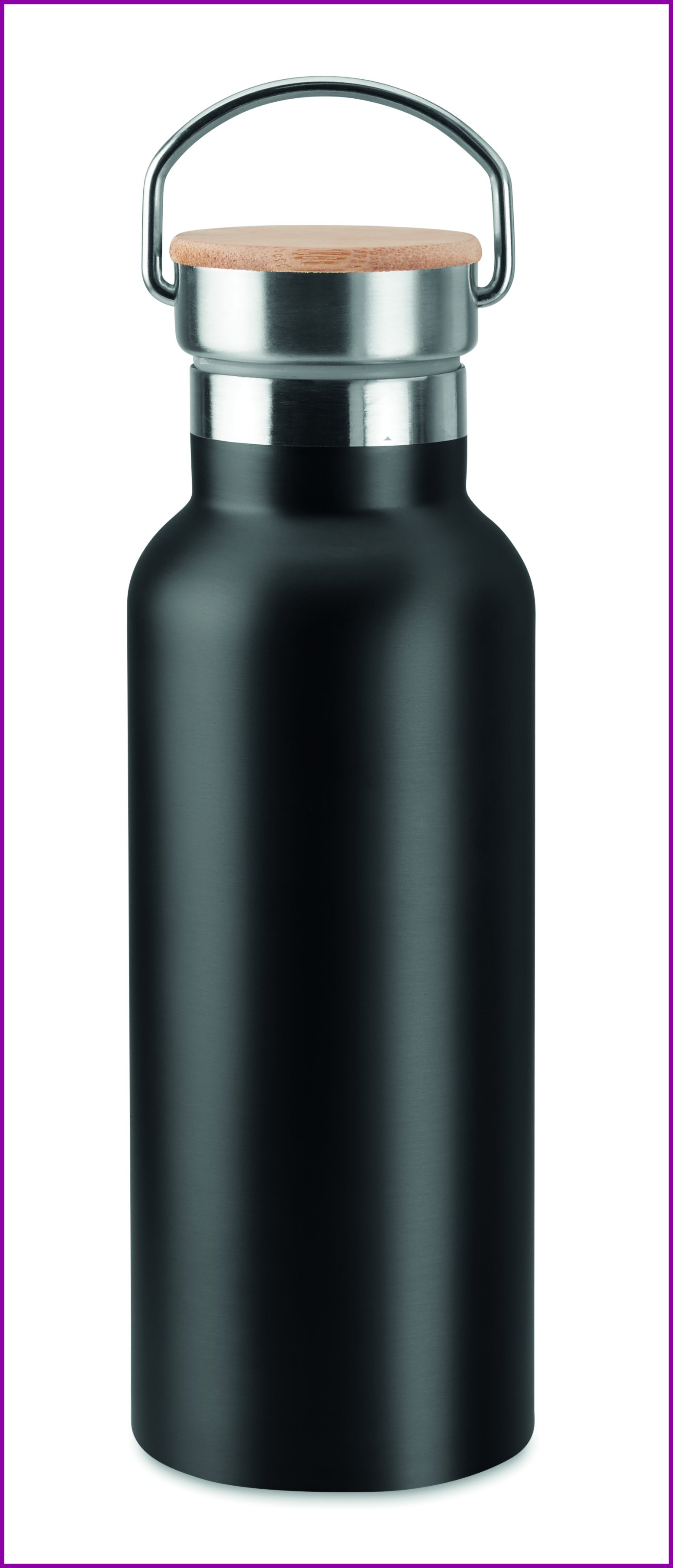 Kaksiseinäinen 500 ml ruostumattomasta teräksestä valmistettu termospullo, bambu korkilla. Tuote on vuoto vapaa. Sublimaatiopainatus saatavana ainoastaan valkoiseen tuotteeseen.