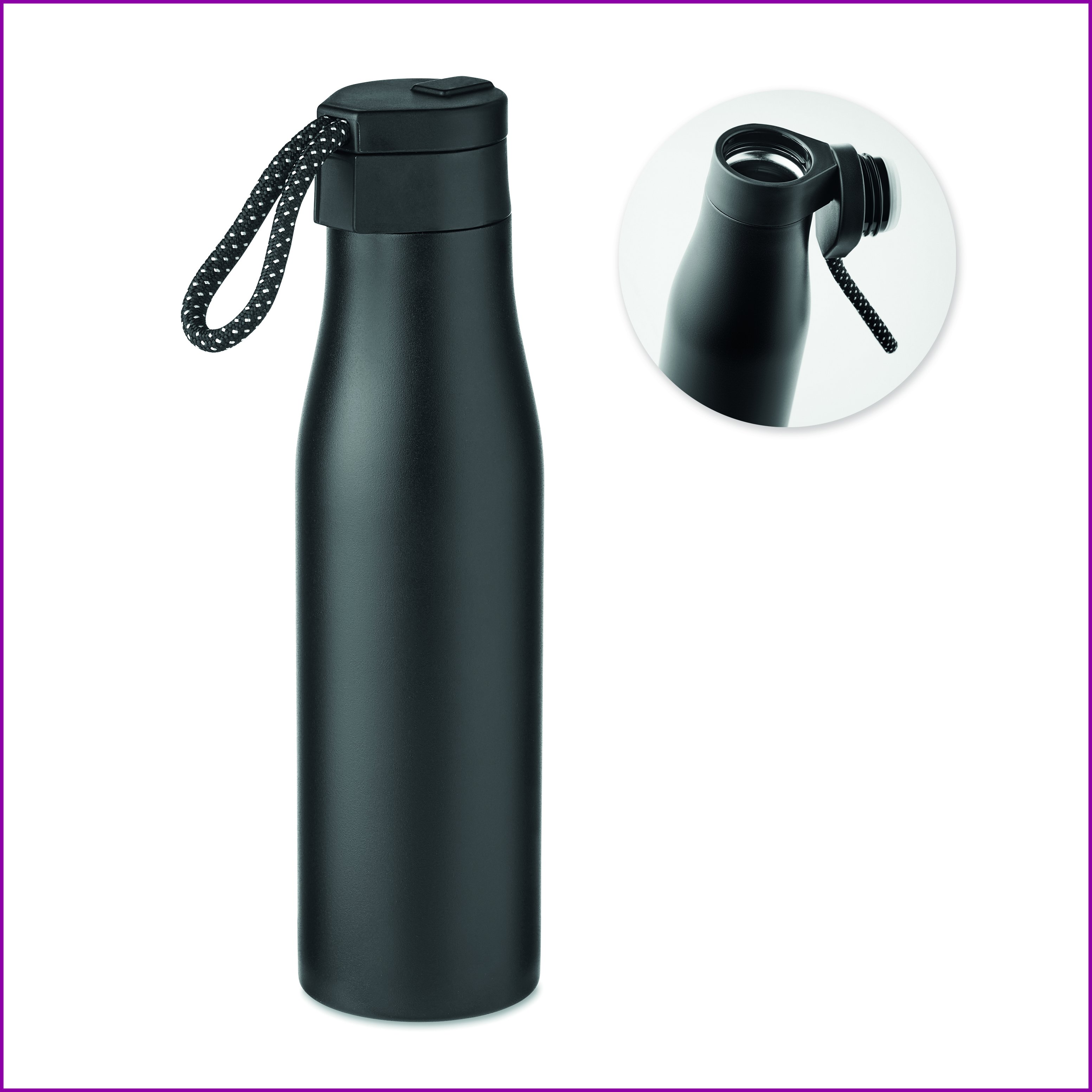 Kaksiseinäinen ruostumattomasta teräksestä valmistettu 600 ml termospullo.