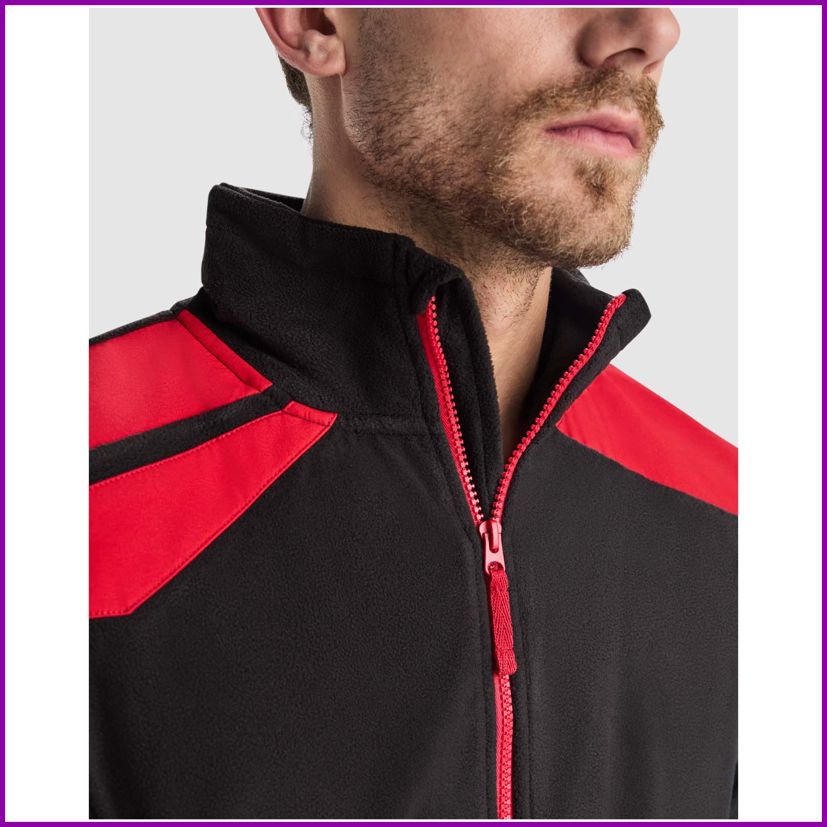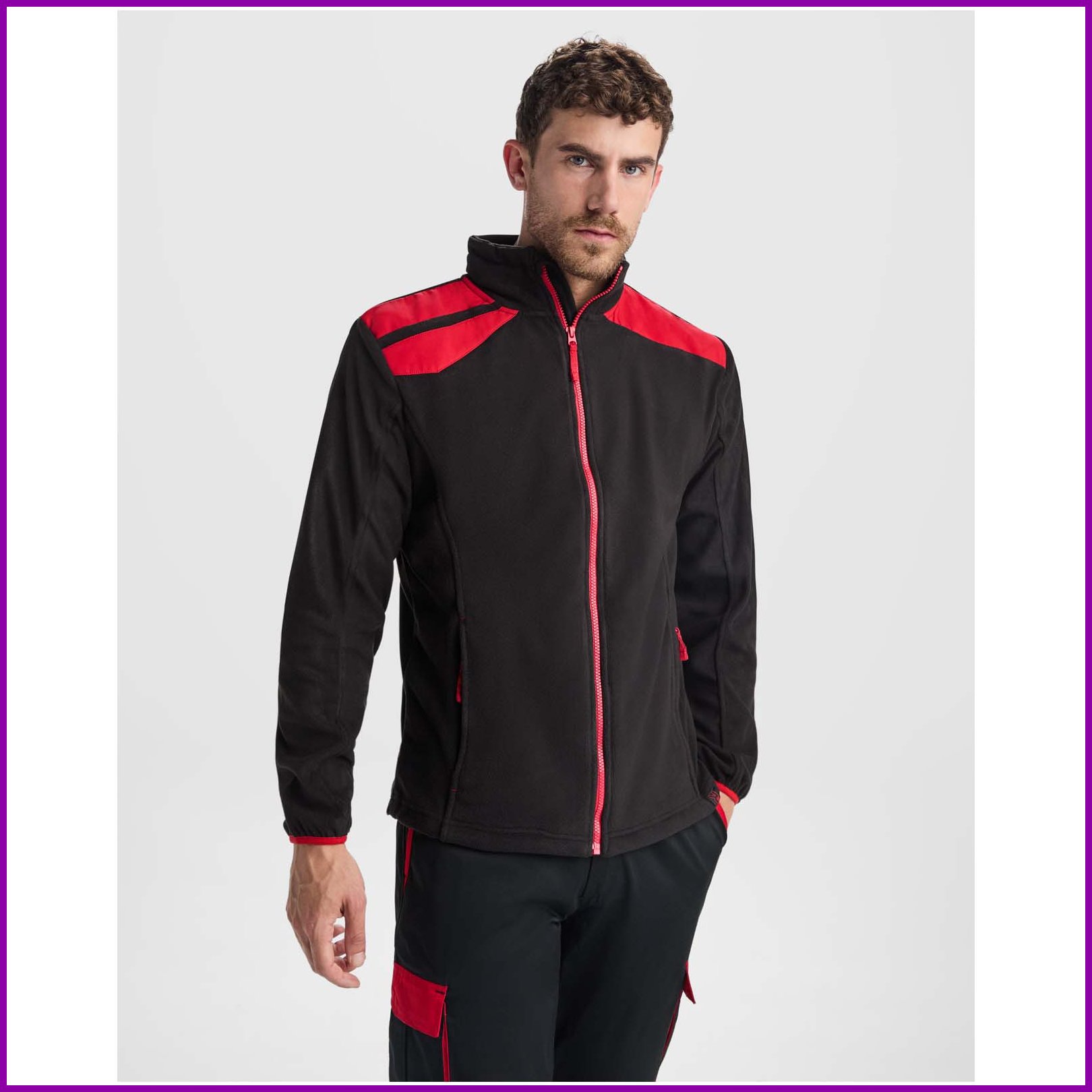 Mikrofleecetakki väriyhdistelmällä. Korkea kaulus ja kontrastivärinen muovivalettu vetoketju. Kontrastiväriset olkapäät ja yksityiskohdat. Vetoketjulliset sivutaskut. Joustavat hihansuut ja sivusäätönauhat helmassa.Värit ja Koot