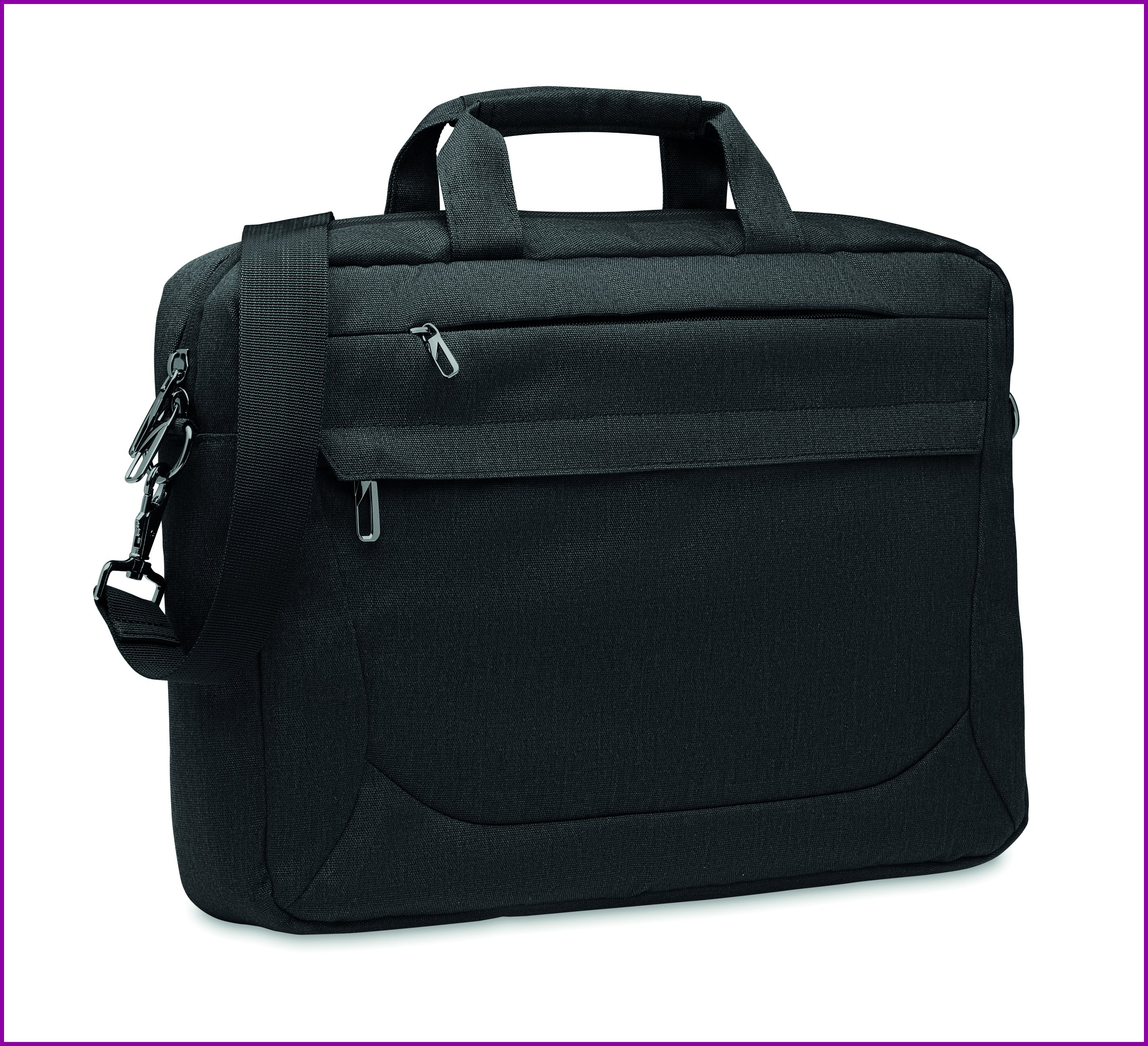 Tietokonelaukku 15 tuuman tietokoneelle 600D RPET-polyesteriä. 2 sisäistä päälokeroa ja suuri vetoketjullinen etutasku jossa päällä on pienempi vetoketjullinen tasku. Irrotettava ja säädettävä olkahihna. Trolleypidike selkäpuolella.
