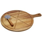 Pizzasetti akaasiapuusta. Setti sisältää pizza-alustan, jossa on 6 uraa viipalointia ja annostelua varten, sekä pizzaleikkurin.Värit ja Koot