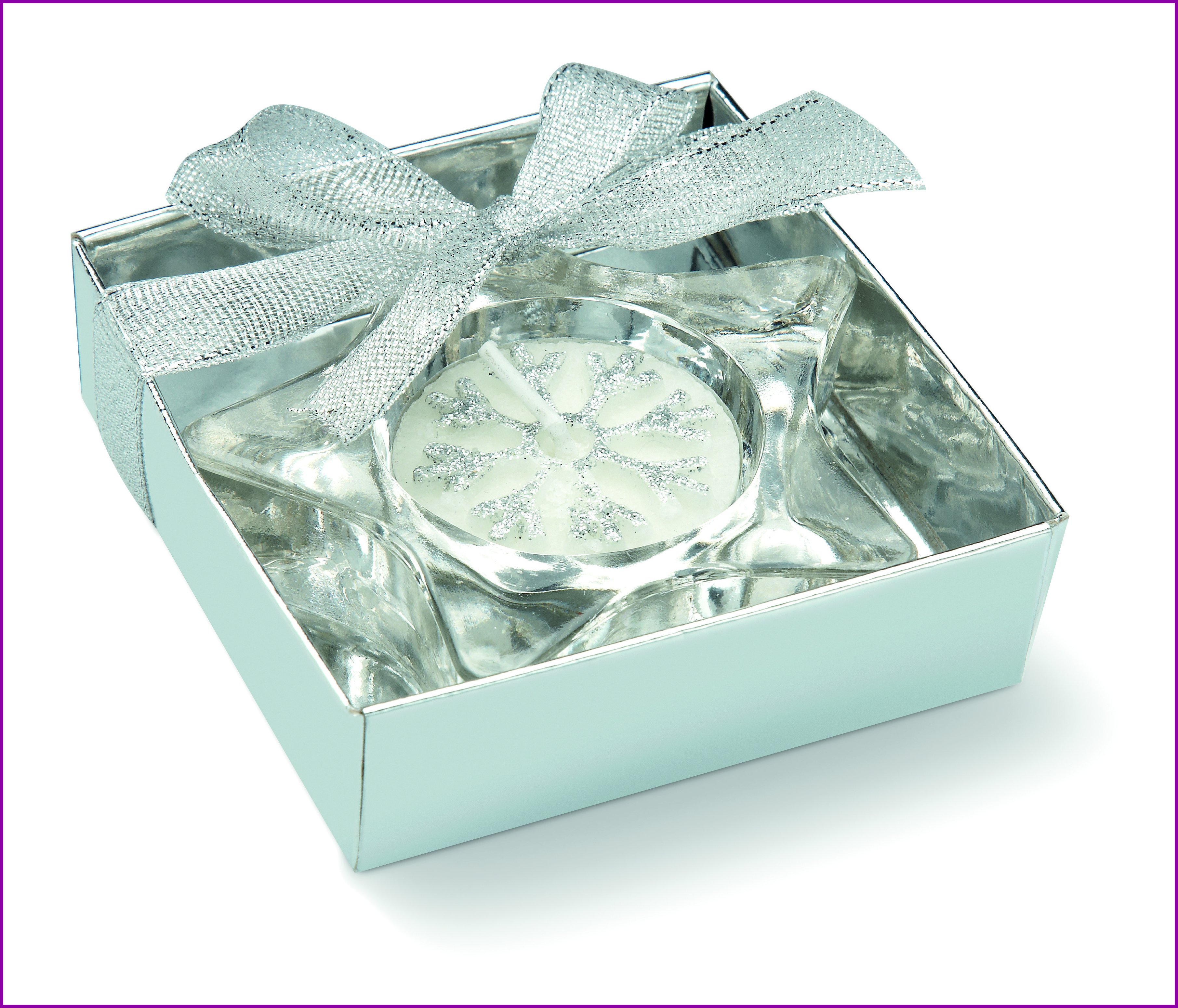 Tähdenmuotoinen tuikkuteline, pakattuna hopeaan lahjapakkaukseen. Tuikkukynttilä sisältyy toimitukseen.