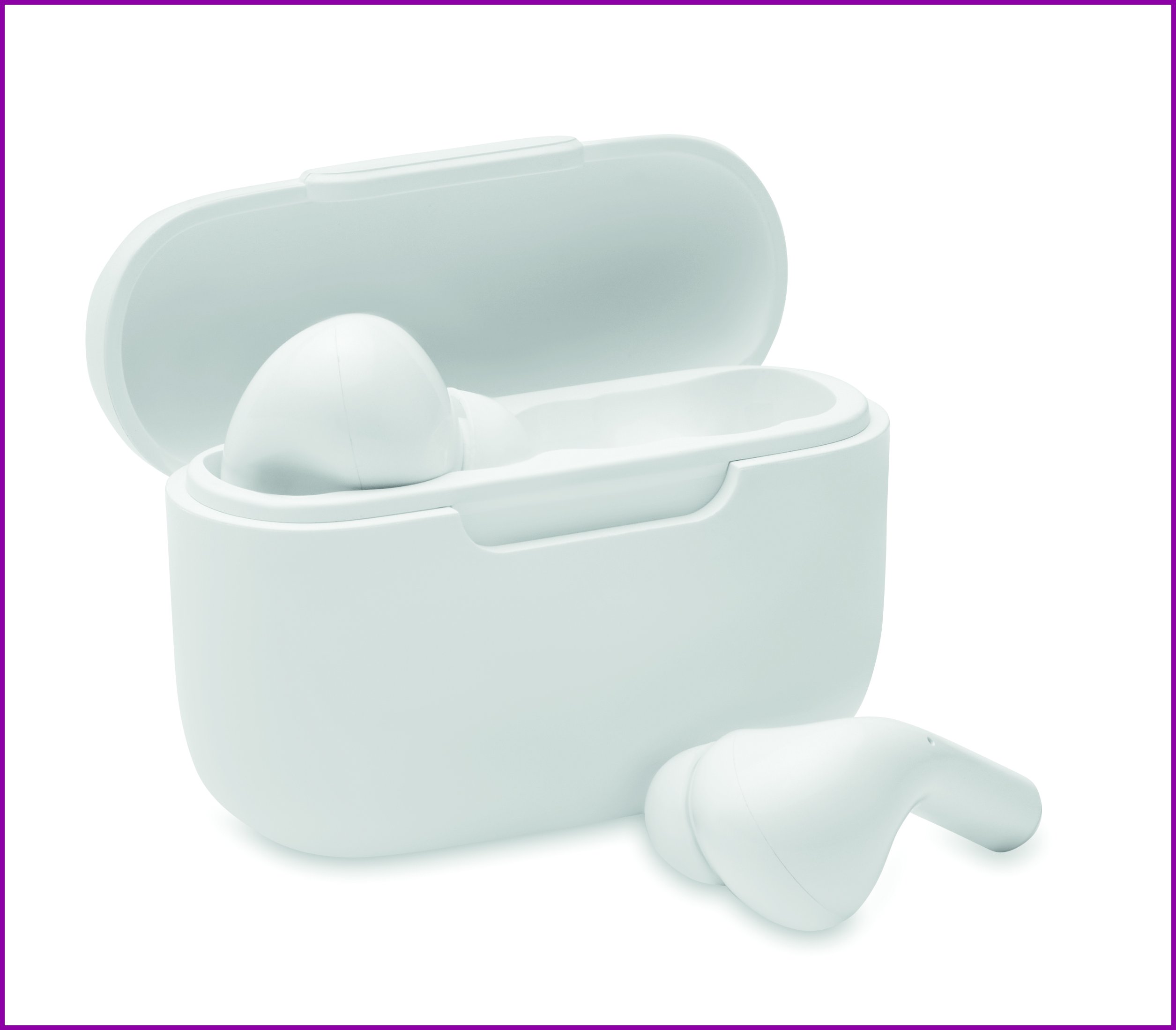 ABS-muovista valmistetut True Wireless Stereo (TWS) 5.3 langattomat stereokuulokkeet, joissa on mikrofoni ja sisäänrakennettu 30 mAh akku. Soittoaika noin 3 tuntia. Type-C-tuloliitäntä. Automaattinen pariliitäntä. Mukana C-tyypin latauskaapeli ja 180 mAh latausasema.