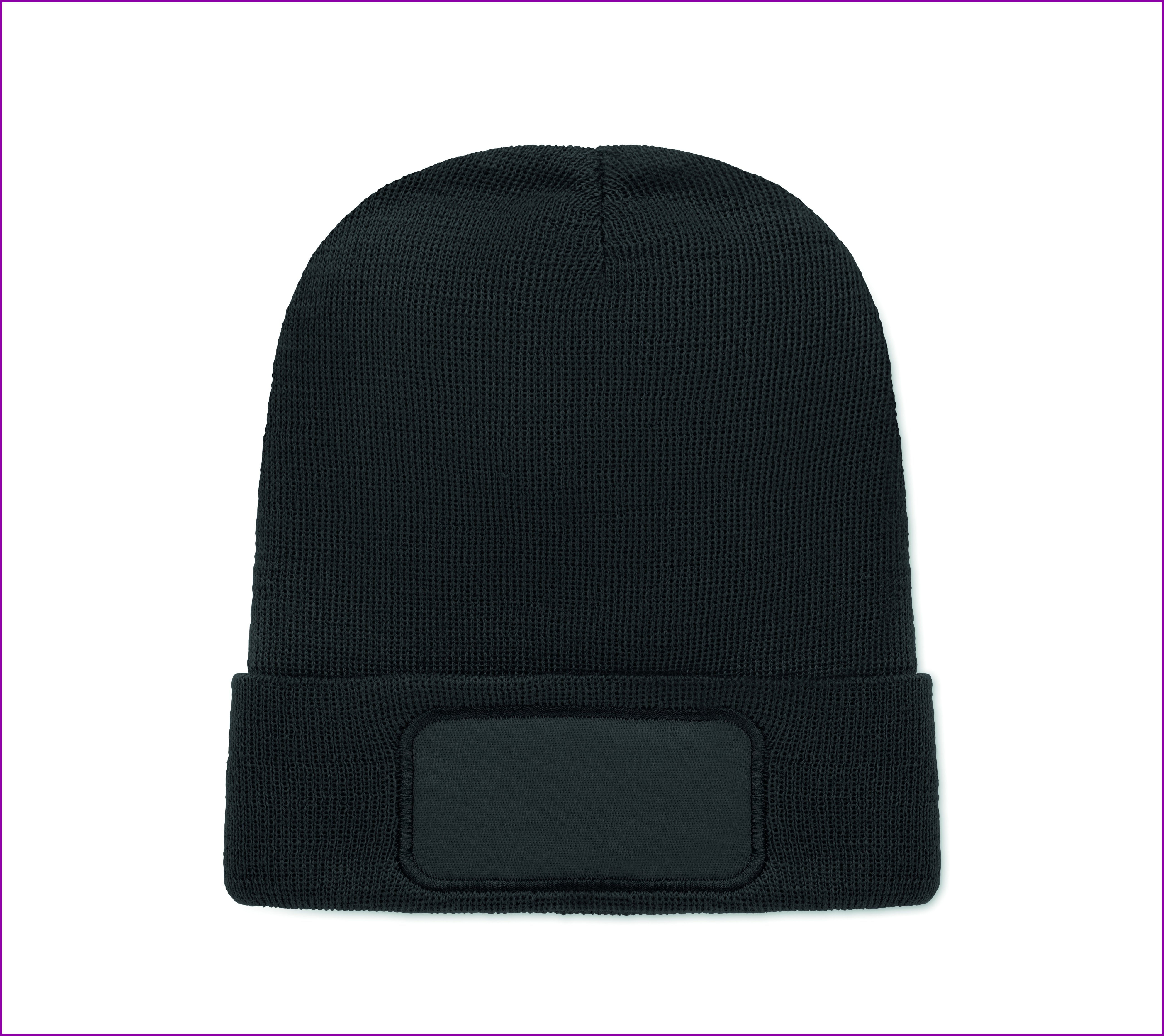 Unisex-neulottu pipo pehmeästä, joustavasta RPET-polyesteristä, jossa on taite ja kangasmerkki painatusta varten.