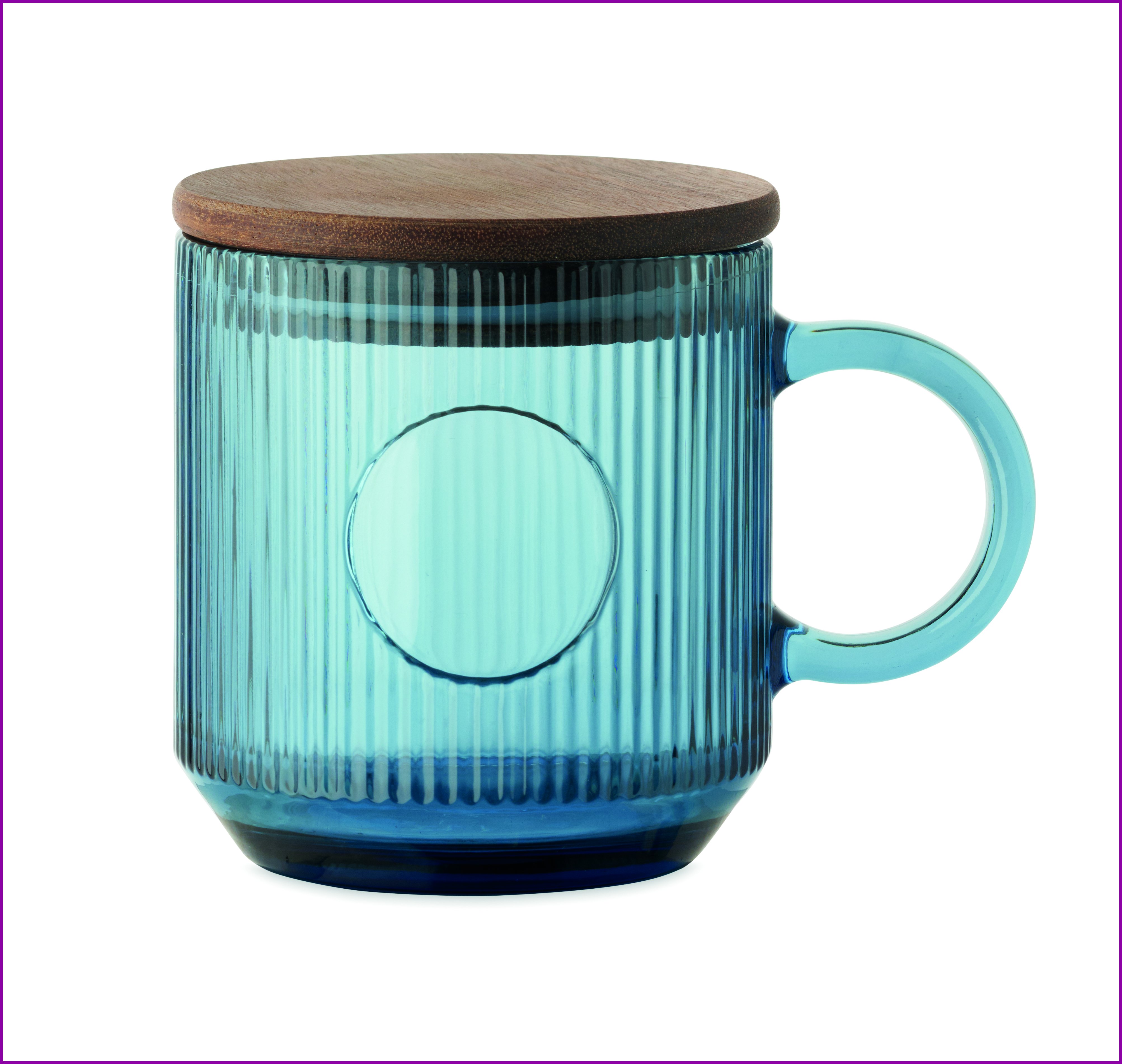 Uurrettu lasinen muki akaasiakannella. Tilavuus: 300 ml. FSC®-certified | FSC 100%, W16.3, FSC-C213206