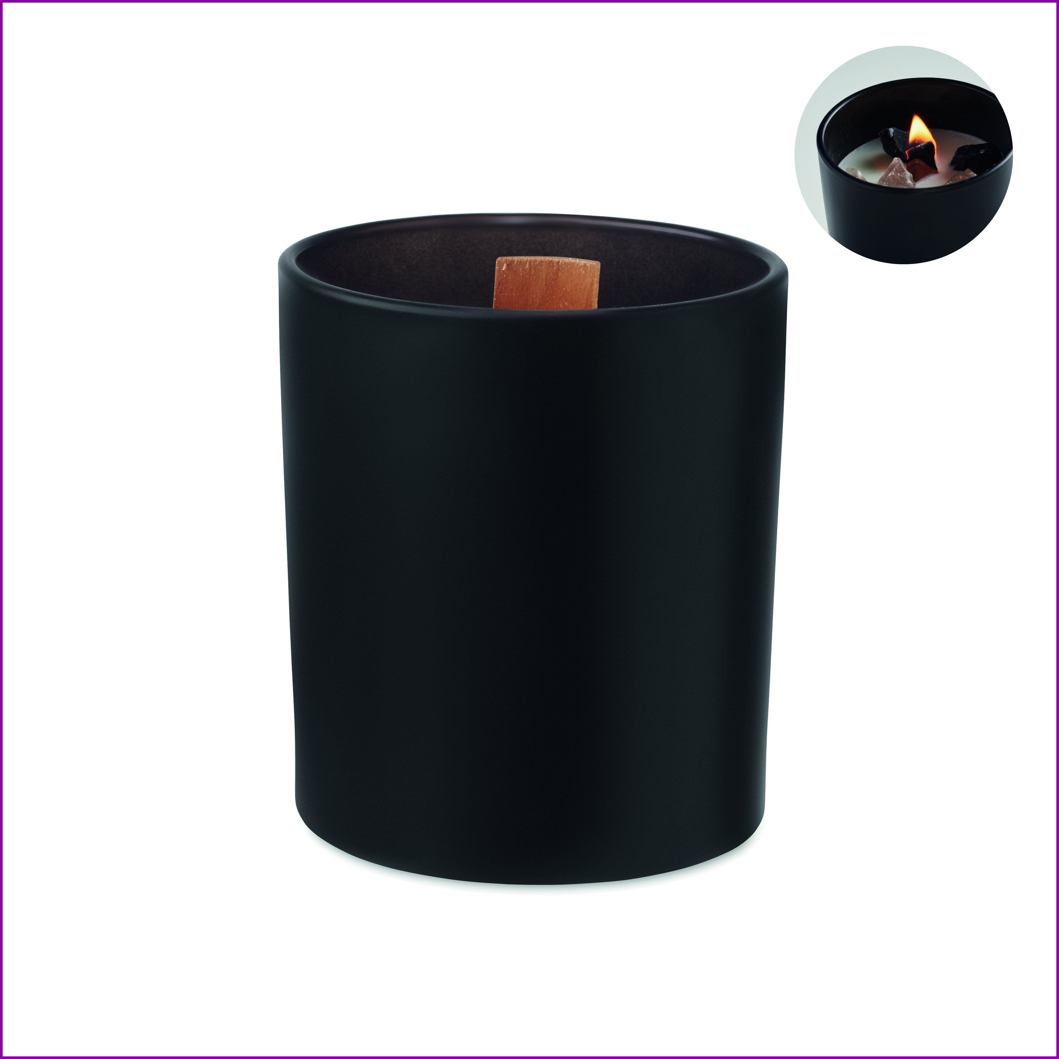 Vaniljatuoksuinen kasvipohjainen vahakynttilä lasissa, jossa on kiviä ja puinen sydänlanka. 200 gr. Paloaika: 20 tuntia.