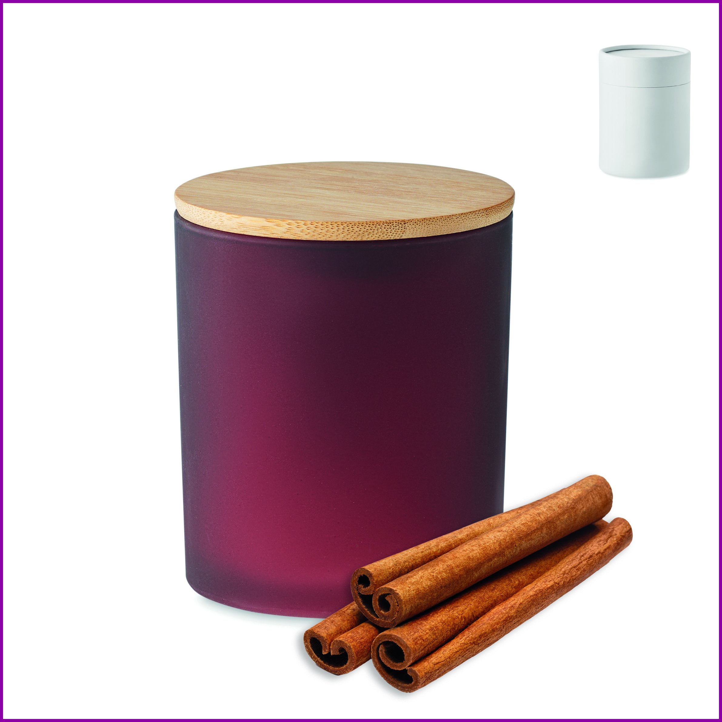 200 gr tuoksuvahakynttilä huurretussa lasissa bambukannella. Pakattuna pahvipakkaukseen juuttinarulla ja voimapaperi kortilla. Arvioitu paloaika 30 tuntia.