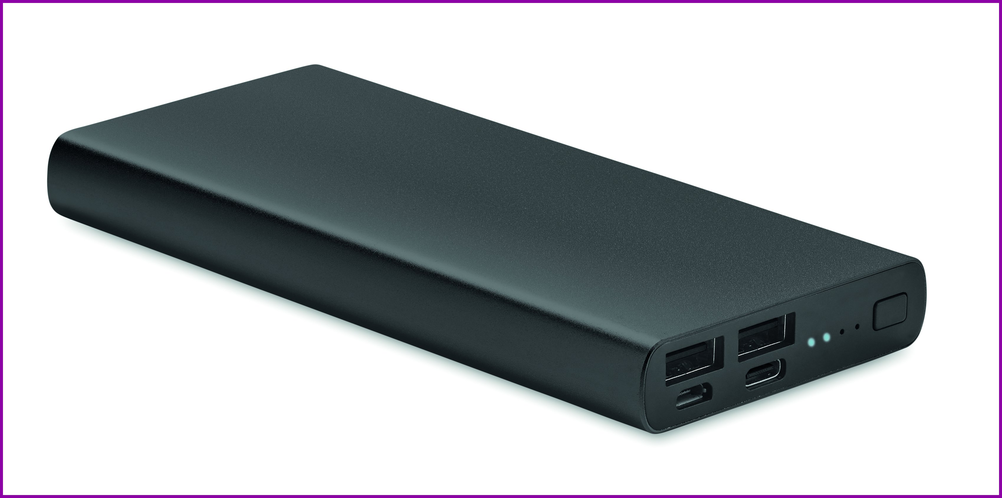 10000 mAh alumiininen varavurtalähde älypuhelinkäyttöön, lähtövirta DC5V/1A ja DC5V/2A . Sisältää merkkivalon ja USB-kaapelin micro usb liitännällä. Tukee pikalataustekniikkaa (18W). Sisään-/ulostulo C-tyypin liitännällä. virransyötötuki (PD) uusimman MacPro®-kannettavan lataamiseen.