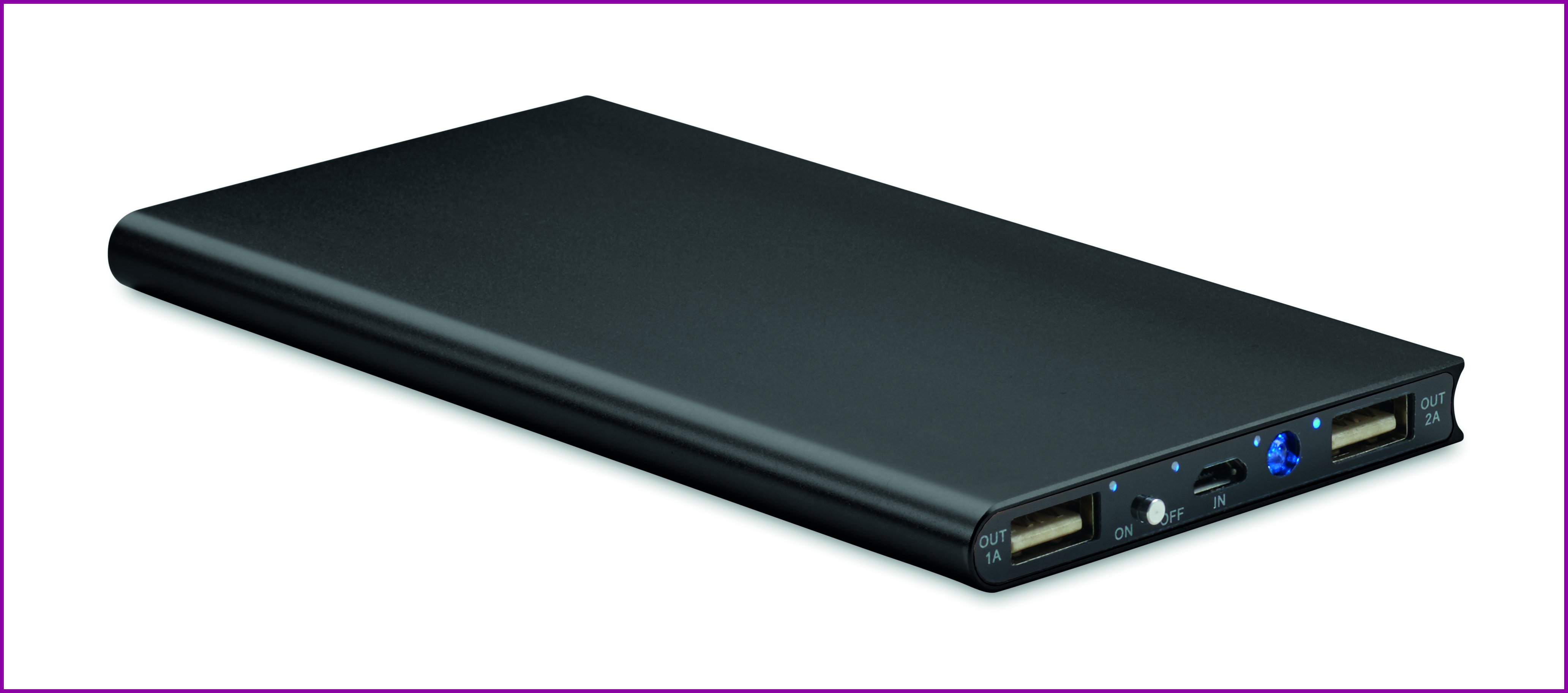 Alumiininen varavirtalähde 8000 mAh. Kapasiteetti älypuhelinkäyttöön, ulostulovirta DC5V / 1A ja DC5V / 2A. Sisältää merkkivalon ja USB-kaapelin micro USB-liittimellä.