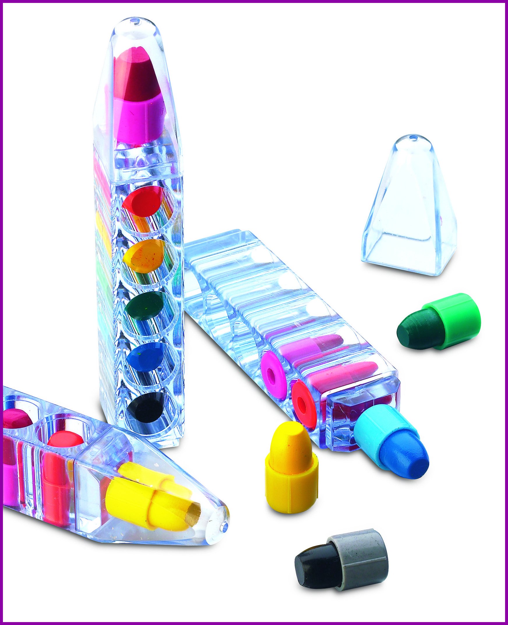 Kuusi väriliitua kynän mallisessa kotelossa.