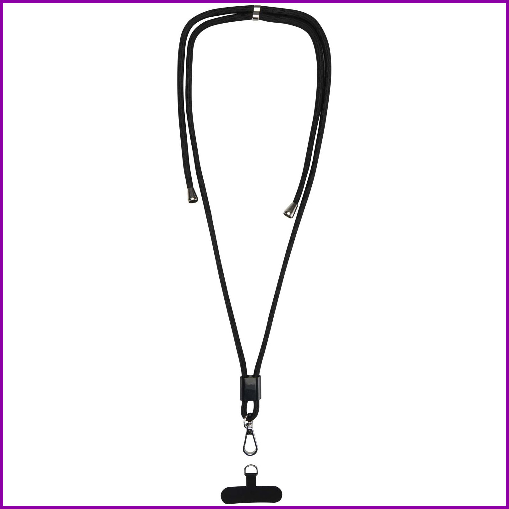 Funi kierrätetystä muovista valmistettu älypuhelinkaulanauha, jossa on sisäänrakennettu datasynkronointi- ja 100 W:n 5-in-1-p Musta