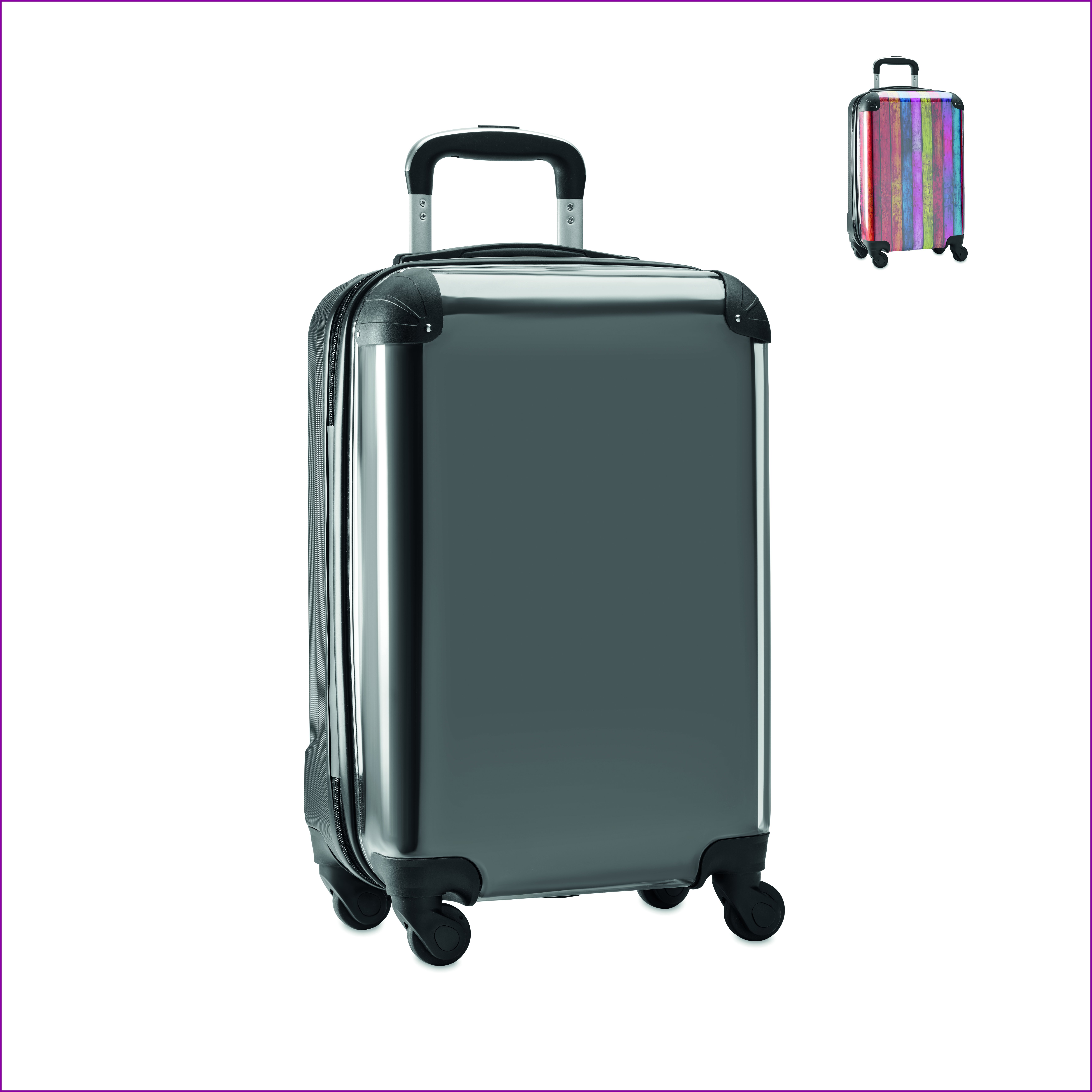 Kovakantinen matkalaukku PC- ja ABS-muovista. Laukkuun saa merkkauksen paperi-insertillä. Laukussa on vetoketjullinen yläosasto ja nauhoilla varustettu alalokero. Sisältää yhdistelmälukon ja tuplaputkikehyksen. Laukku menee lennoilla käsimatkatavaroihin.