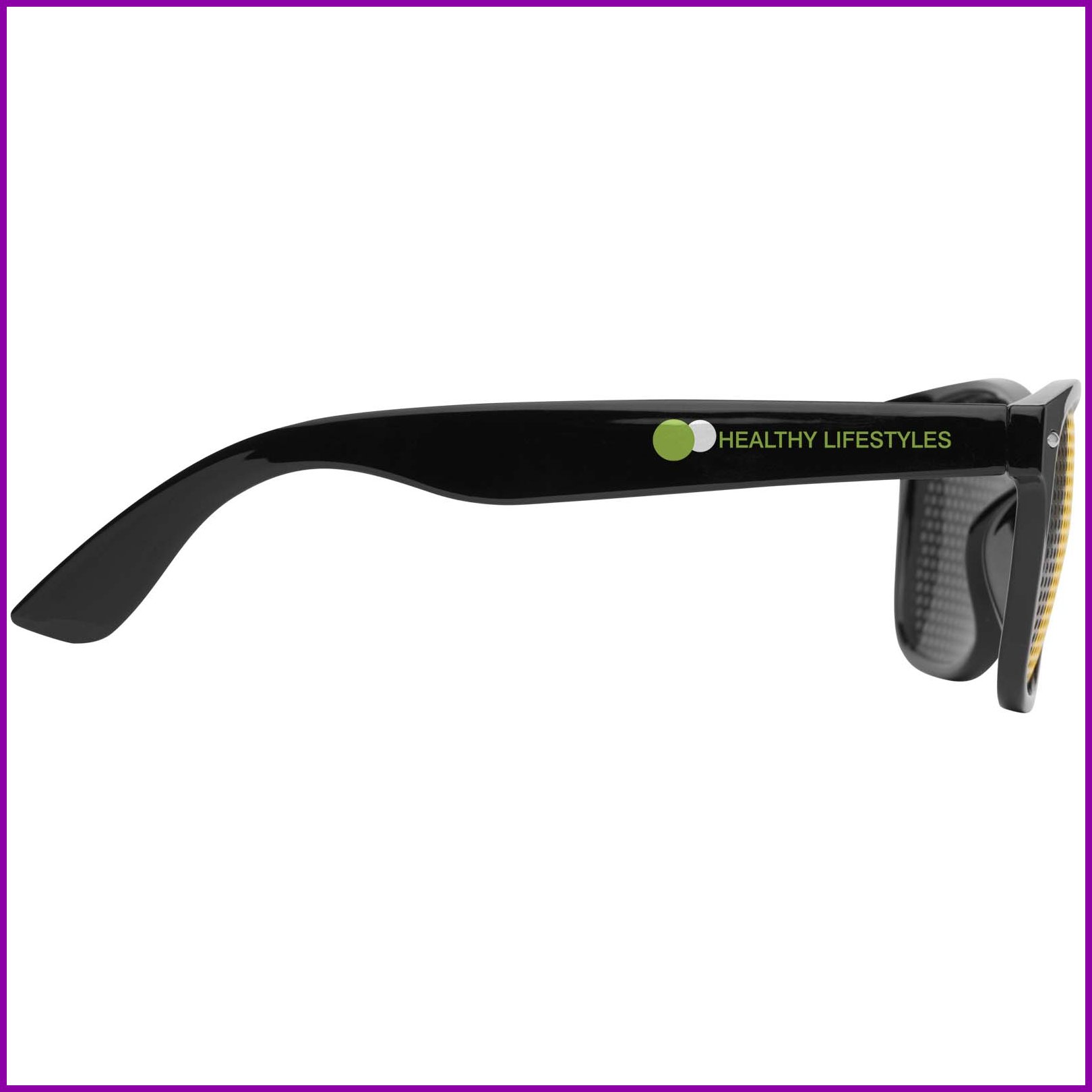 Hinta 0,80€ / KPLNämä retrohenkisesti muotoillut aurinkolasit sopivat mainoslahjaksi kesäfestivaaleille, tapahtumiin tai muihin ulkoilma-aktiviteetteihin. Nämä aurinkolasit ovat EN ISO 12312-1 -standardin mukaiset, ja niissä on UV400-linssit, jotka on luokiteltu kategoriaan 3, joten ne ovat täydellinen valinta ...Varastossa