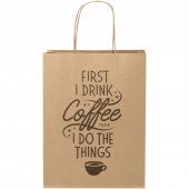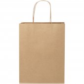 Keskikokoinen 120 g/m2-voimapaperikassi (24 x 9 x 32 cm) paperisilla kierrekahvoilla. Etu- ja takaosassa on runsaasti tilaa logon tai minkä tahansa muun kuvion painattamiseen, joten kassi sopii erinomaisesti markkinointiviestin välittämiseen. Euroopassa valmistettu ja 100-prosenttisesti kierrätettävä kassi on vastuullisempi valinta ympäristötietoisille yrityksille, jotka etsivät luontoa säästävää pakkausratkaisua.