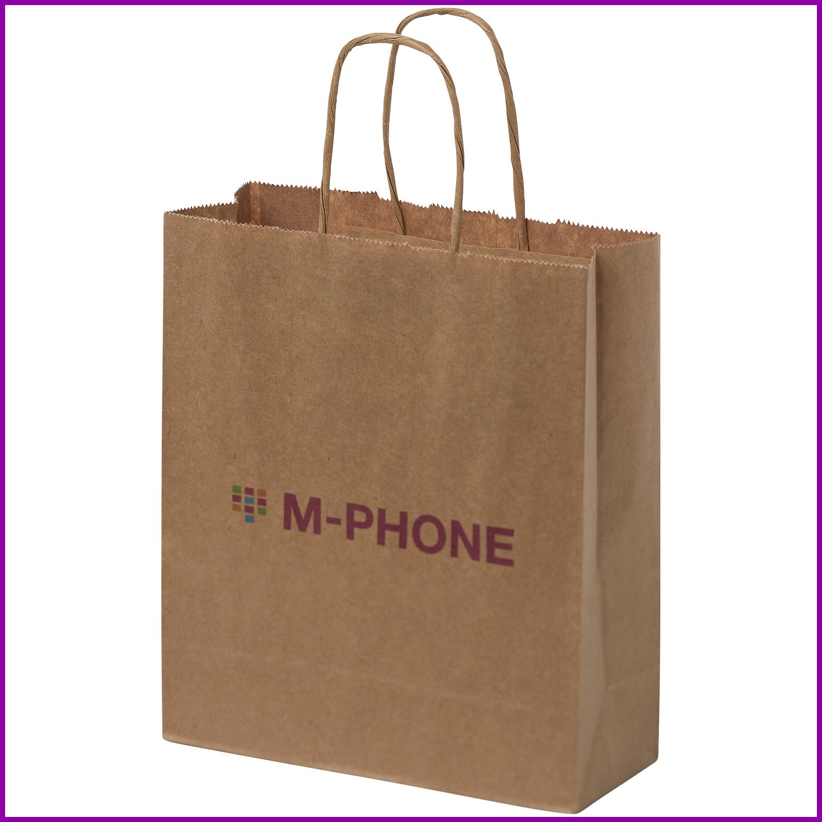 Pyydä tarjous painatuksesta tuotteseen Voimapaperikassi 80 g/m2 kierrekahvoilla – 18 x 8 x 21 cm Kraft ruskea