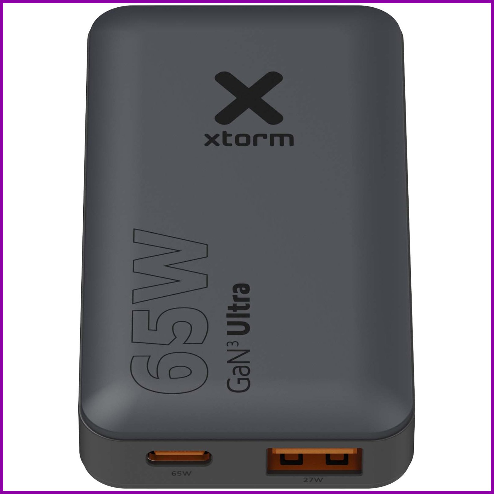 Xtorm 65 W:n Fast Travel matklaturi kaapelilla ja adapteripäillä Musta
