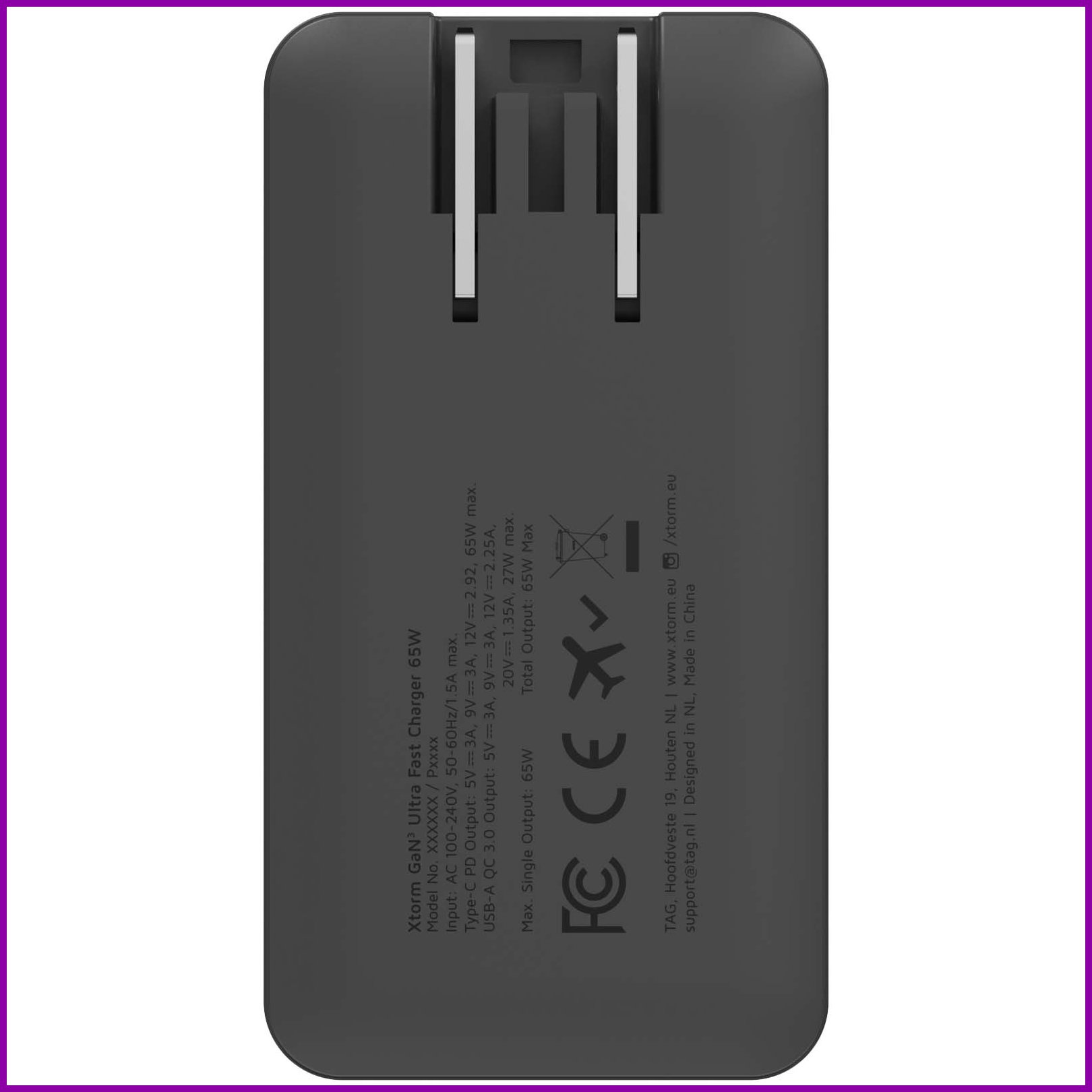 Pyydä tarjous painatuksesta tuotteseen Xtorm 65 W:n Fast Travel matklaturi kaapelilla ja adapteripäillä Musta