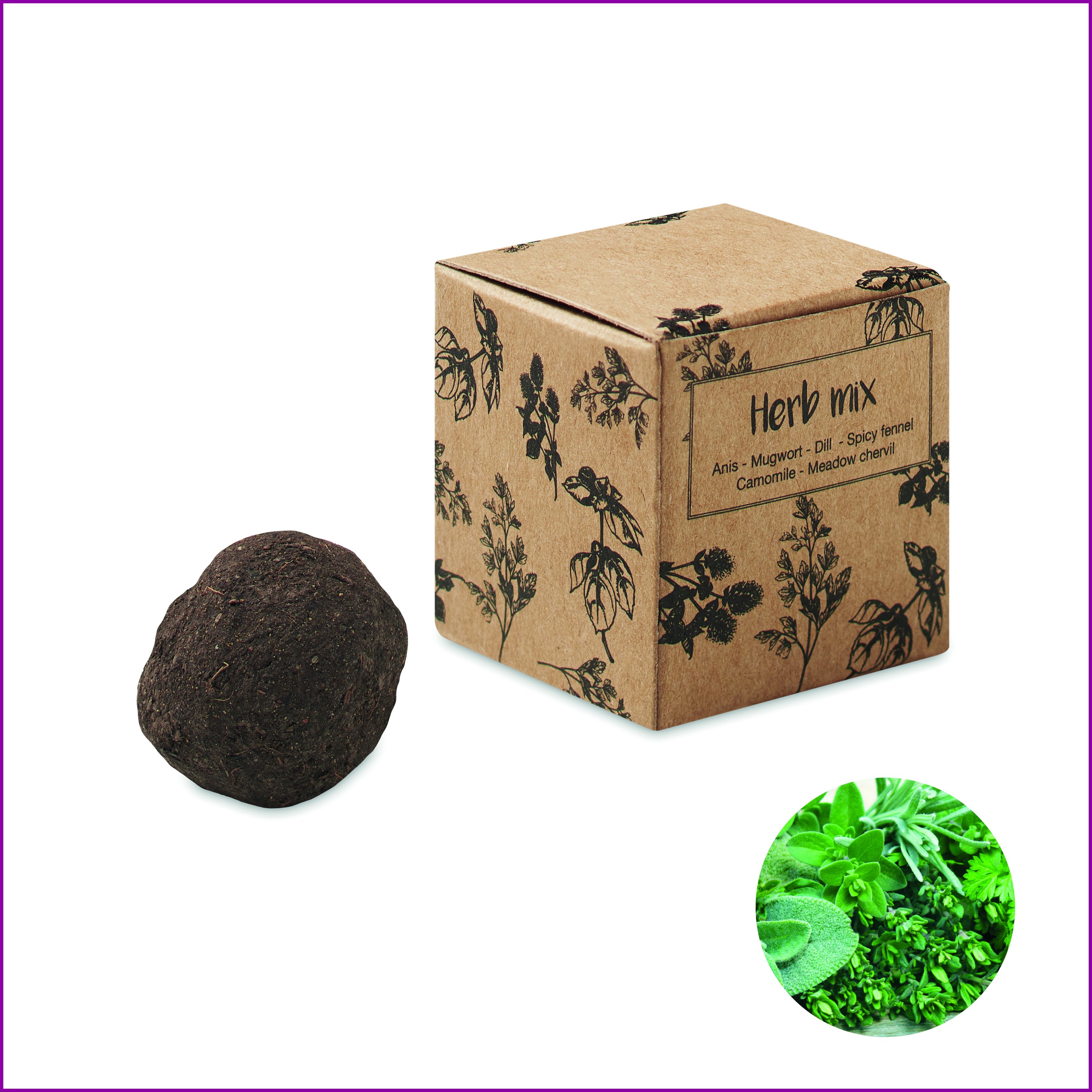 Viljelypakkaus, jossa on siemenpallo pahvilaatikossa, siemenpallo sisältää aniksen, tillin, fenkolin, kamomillan ja persiljan siemeniä. Valmistettu EU:ssa.